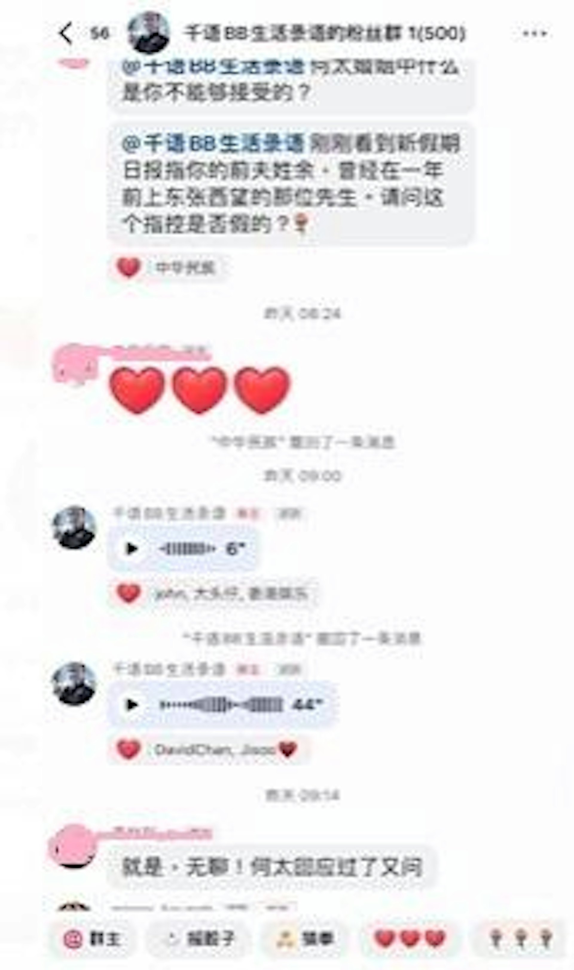 3 k y1 i( ?8 T, m0 }& Z新何太親自錄音回覆粉絲。(抖音截圖)