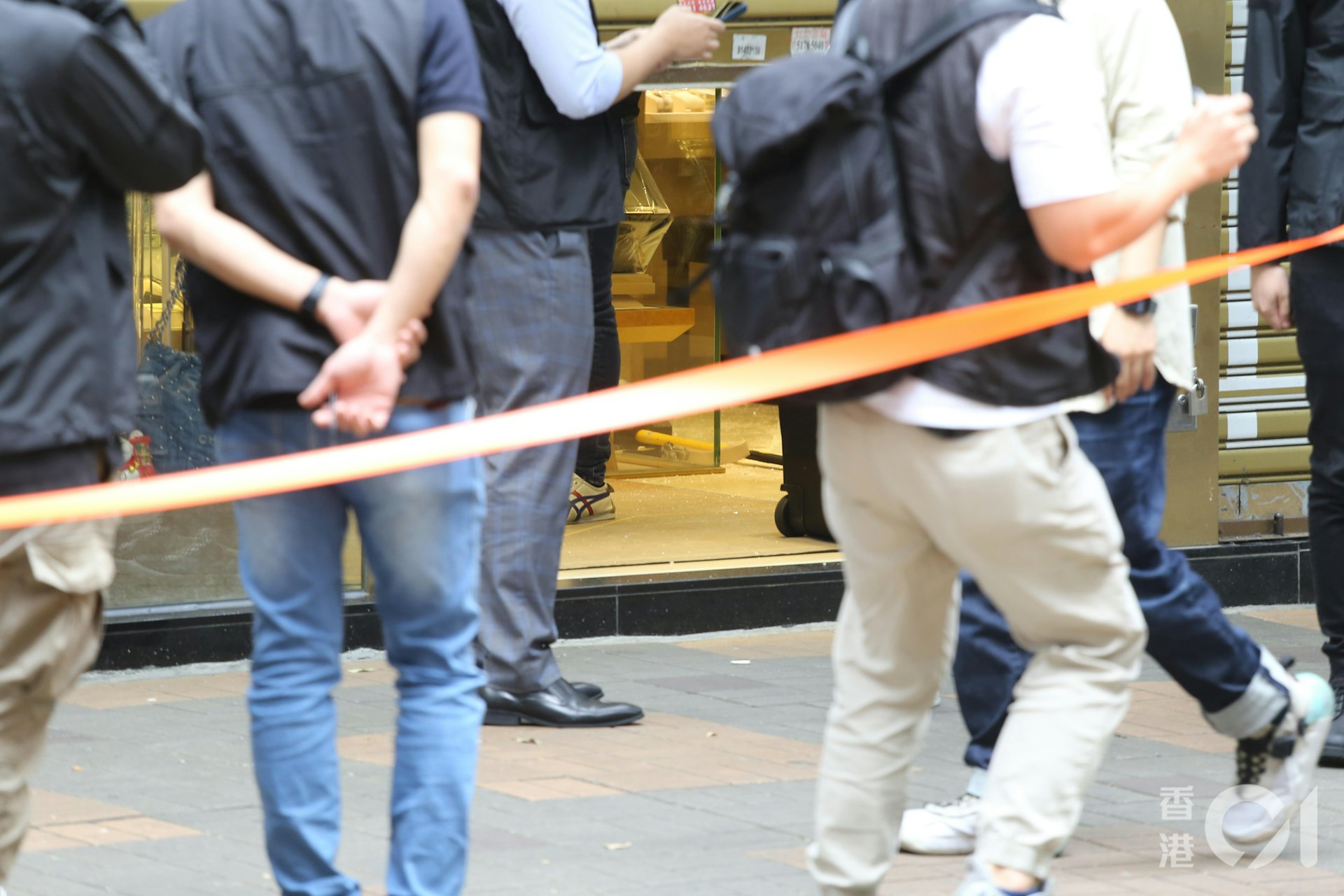 7 I' ~* [! V9 F k7 [! ~1 w8 K公仔箱論壇尖沙咀海防道鐘錶珠寶店「名人站」於5月7日中午遇劫,警方調查後,職員在場善後。(梁偉權攝)tvb now,tvbnow,bttvb, H5 o! }5 f7 U0 c% Q2 T9 T