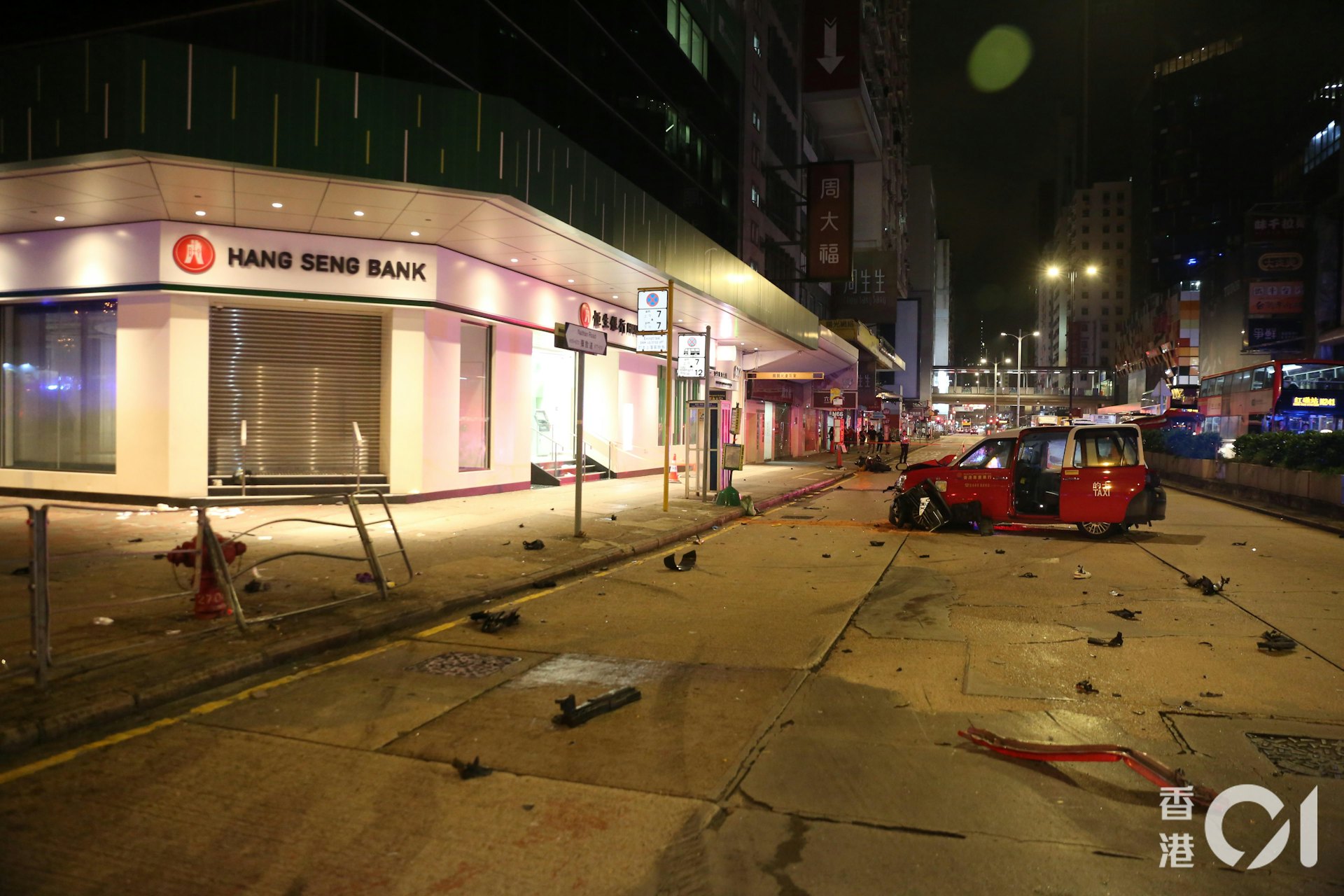 車CAM拍攝時間是凌晨2時44分,涉事的士沿彌敦道往深水埗行駛,至亞皆老街交界,電單車在右方高速駛至,猛撼的士車身。電單車上兩人飛彈數米高,再跌落恒生銀行門外的行人路;同時間的士餘勢未了,在路中打「白鴿轉」才停下。
