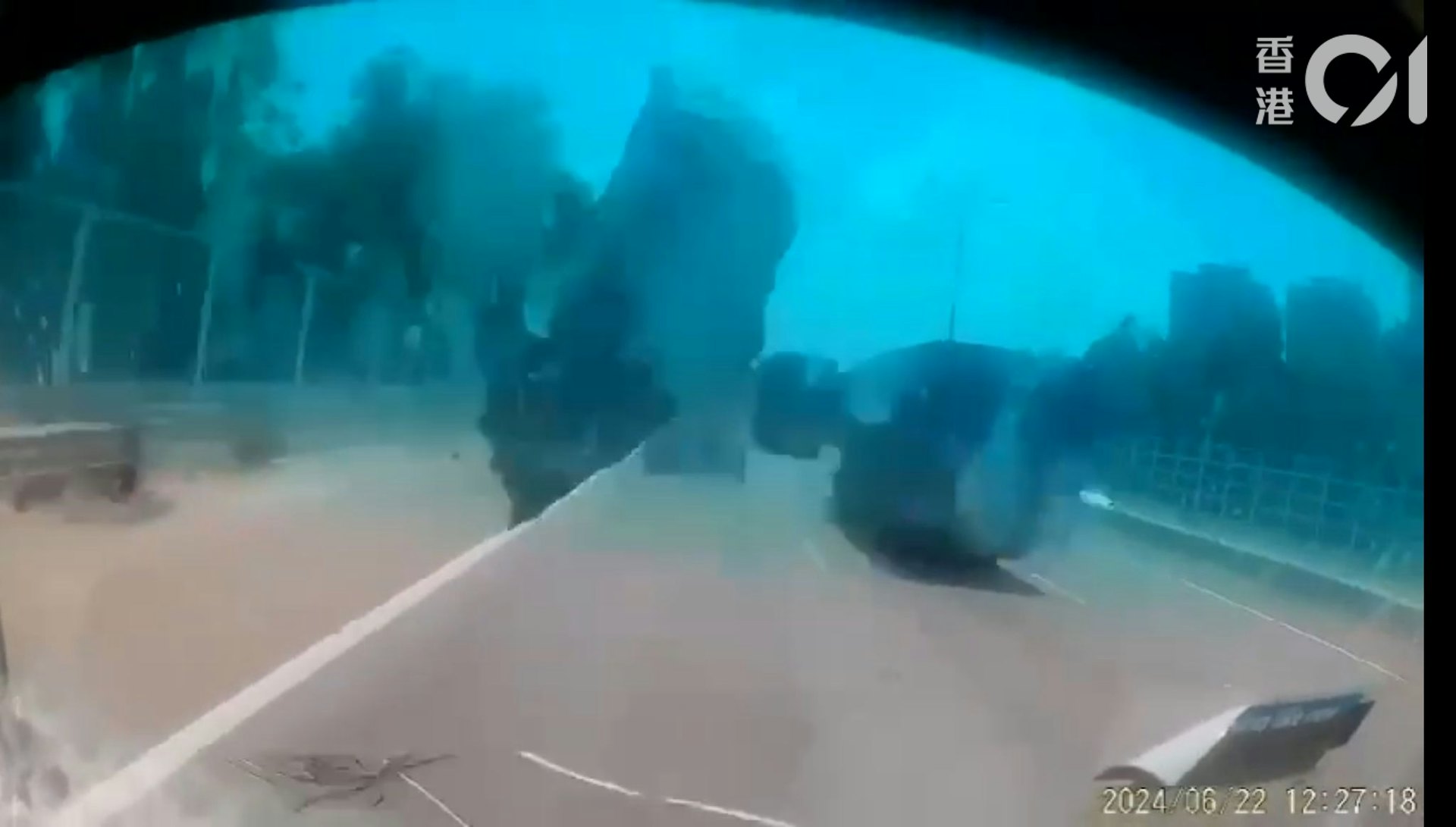 : v& \$ U! E) m7 d1 m; v9 D8 }tvb now,tvbnow,bttvb讀者提供片段可見,一塊石頭自前車飛出,擊中該車大銀幕玻璃。(讀者提供)