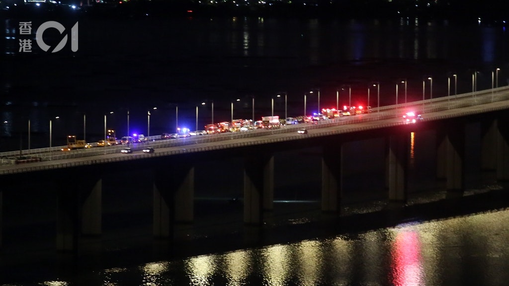 " |6 P. t- u4 }7 j% N6 c% Z消防處署理消防區長謝德華指,消防處於昨晚9時16分,接獲深圳灣大橋近燈柱BD3757發生交通意外,指一輛私家車撞欄墮海。消防人員於晚上9時26分,即接報後10分鐘到場 。消防處共派出11架消防車、6消防船 、5輛救護車,共61名消防員、救護員,包括潛水隊、公路及鐵路拯救專隊人員等。