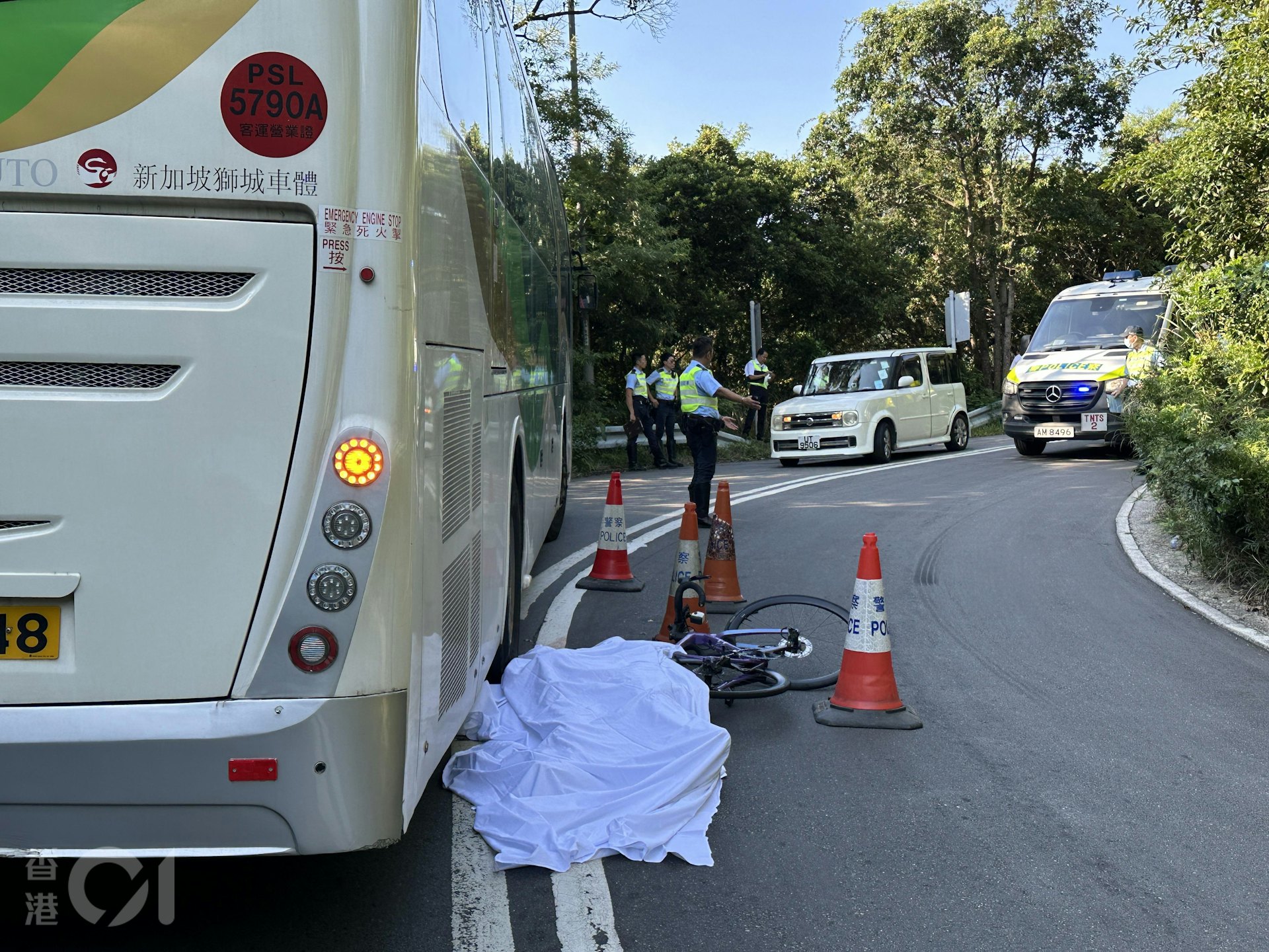 警方表示,死者姓潘(31歲),當時事主踏單車沿羗山道往大澳方落斜,據報在彎位失平衡跌倒,被相反方向駛至的旅遊巴輾過,其頭部嚴重受傷,現場被證實死亡;姓鍾(59歲)男司機,涉嫌「危險駕駛導致他人死亡」被捕,正被扣查。新界南總區交通部特別調查隊已接手跟進,呼籲任何人如目睹意外發生或有任何資料提供,請致電3661-1346與調查人員聯絡。