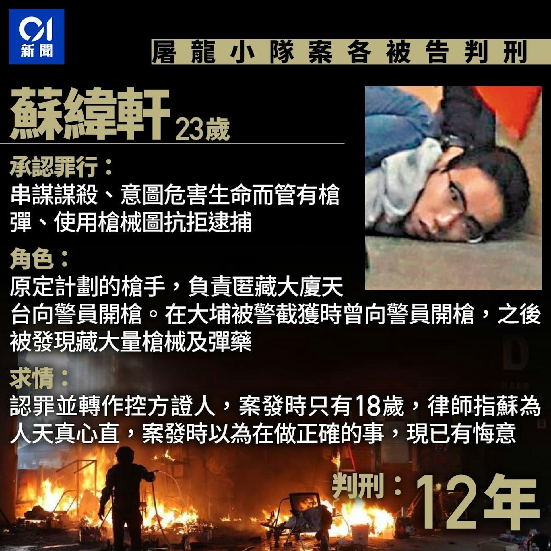 槍手蘇緯軒囚12年及另兩涉軍火罪被告判囚5年10月及9年