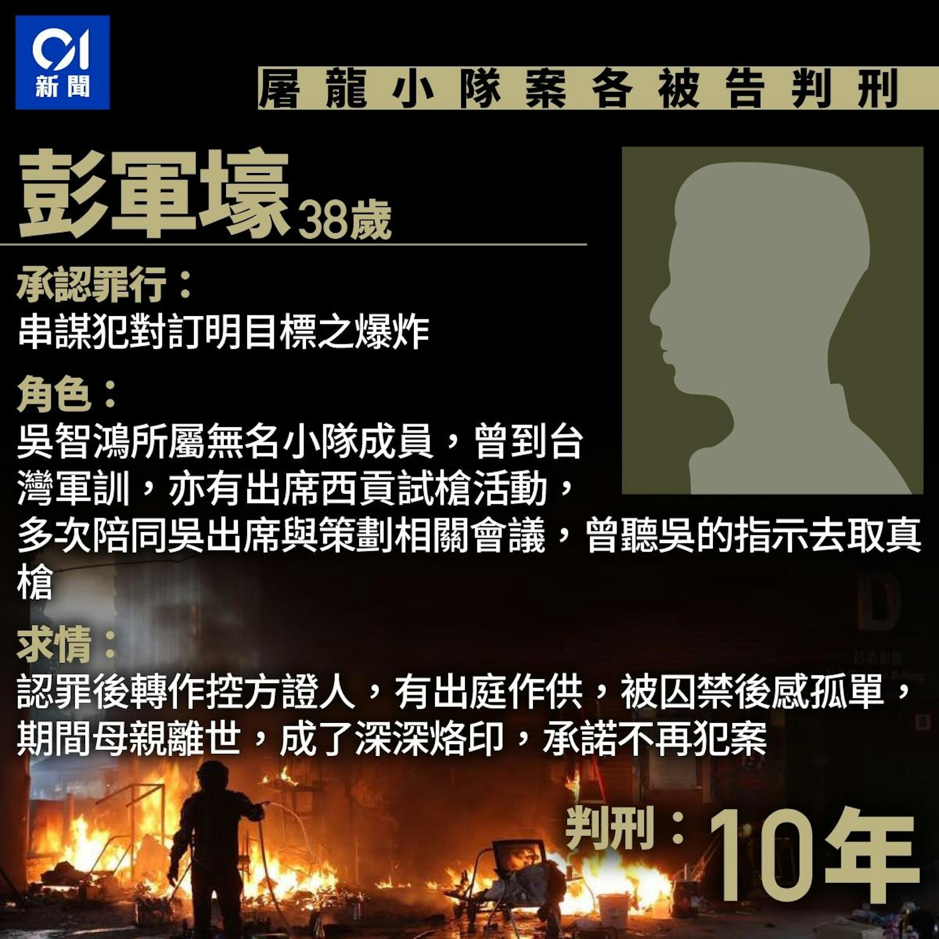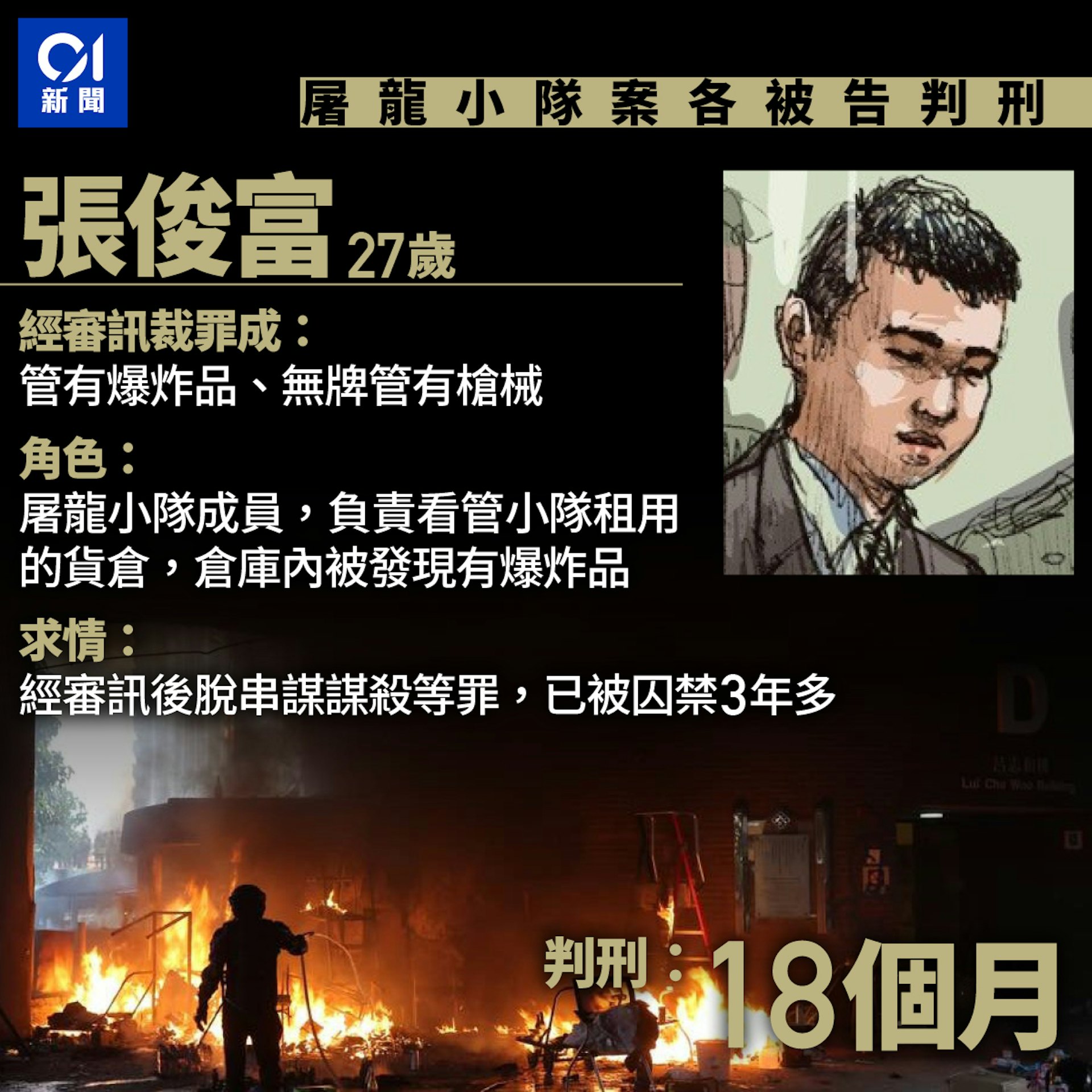0 W" u: ~; n) v3 g+ E) \/ [tvb now,tvbnow,bttvb屠龍小隊與一個無名小隊,涉嫌串謀在2019年12月8日在鬧市放炸彈,計劃並包括派槍手亂槍掃射,盡殺警員,然後「執警槍」。警方及時在大行動前的清晨拘捕多人,計劃最終告吹。控方首次引用《反恐條例》起訴,案中7名被告,今(14日)在高院接受判刑。法官張慧玲判認罪6被告囚5年10月至23年10月不等,其中兩名小隊隊長黃振強及吳智鴻,分別入獄13年半及23年10個月,認罪的「槍手」蘇偉軒,判囚12年,污點證人彭軍壕囚10年。不認罪的賴振邦則判囚10年10個月。% x0 I0 P4 j3 ^0 W' L' z" }- N) j4 \% A