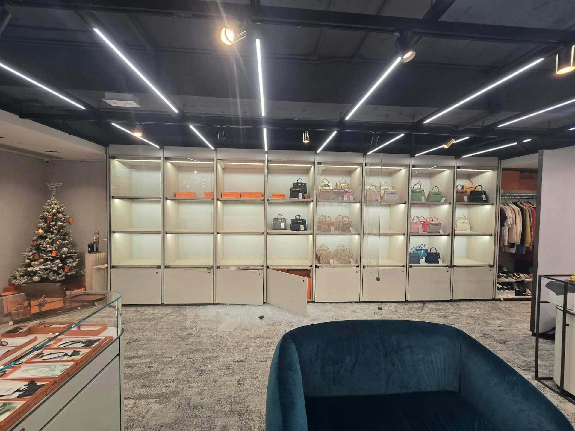 賊人帶來的3個白色大袋都裝滿手袋後,他們一人提着一個大袋匆匆離去。其中一名賊人離開時,更疑踩中跌於店門地面的玻璃碎,幾乎滑倒。由7時33分開始破門入內,至7時36分左右離場,整個犯案過程僅約3分鐘。