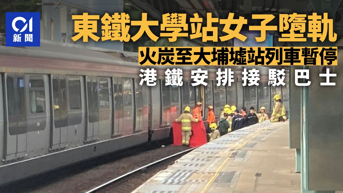 港鐵表示,今午約4時45分,東鐵綫一列往羅湖方向列車駛進大學站1號月台期間,車長見到有乘客墮軌,即時停車;同時,車站職員亦留意到相關情況,立即按動月台緊急掣,防止其他列車進出車站。車務控制中心隨即報警及通知消防到場。0 }8 x5 z a0 x2 @/ D