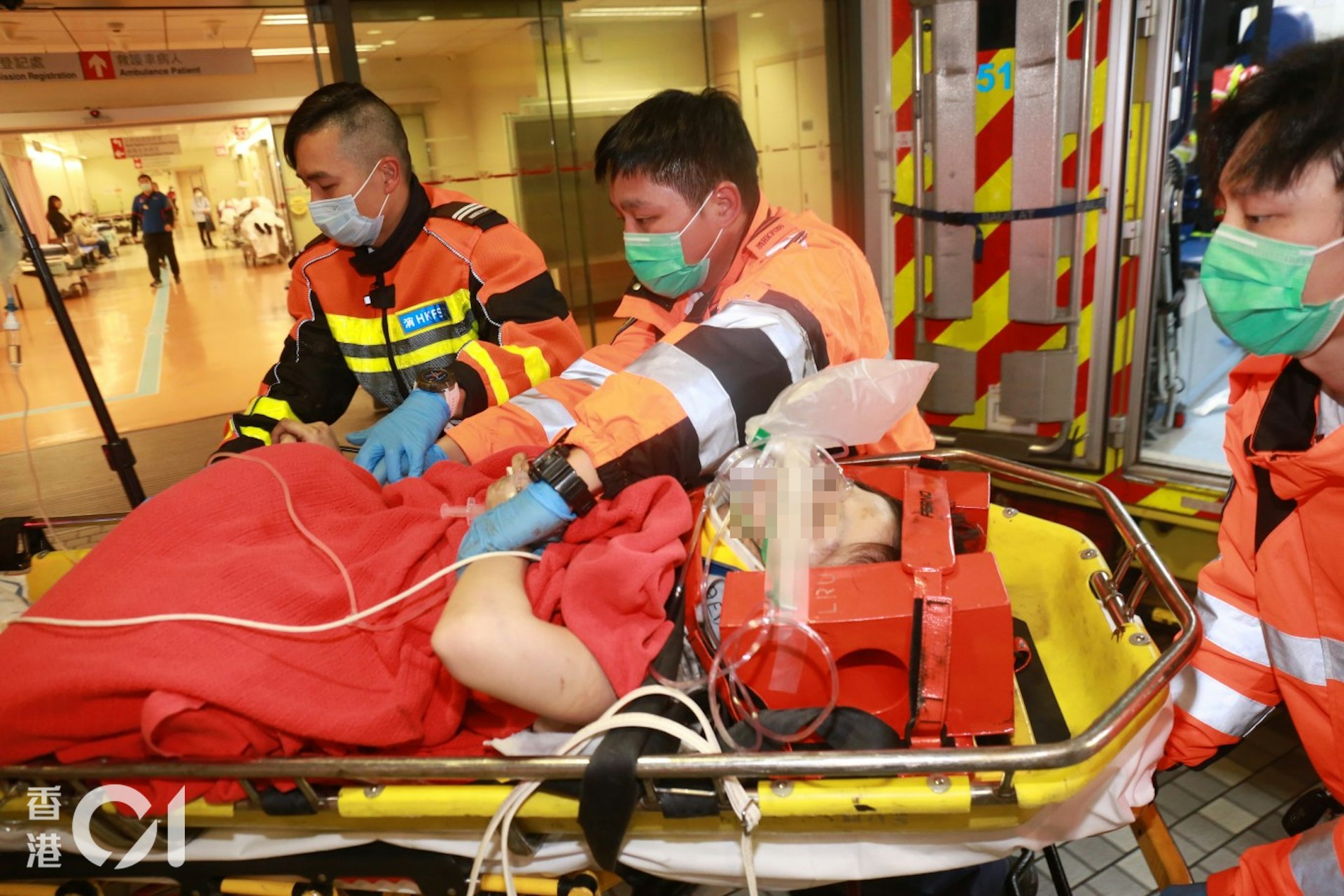 一名女子在港鐵東鐵綫大學站墮軌,由消防在列車車底救出後,由救護員送院救治。(林振華攝)