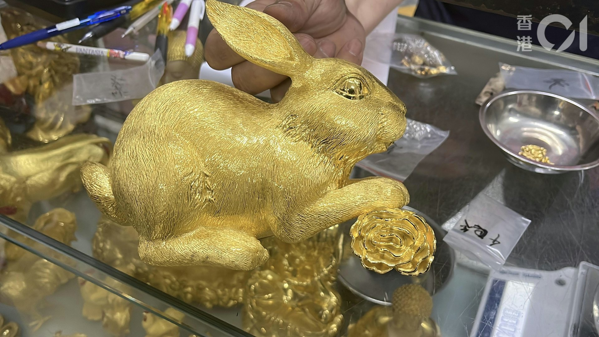 0 w/ p9 @" s/ z) O& ^+ J' N6 X, ^ _中環忠記老闆鍾先生表示,近兩天收購一隻重達3公斤的金兔,價值200多萬港元。(林遠航攝)