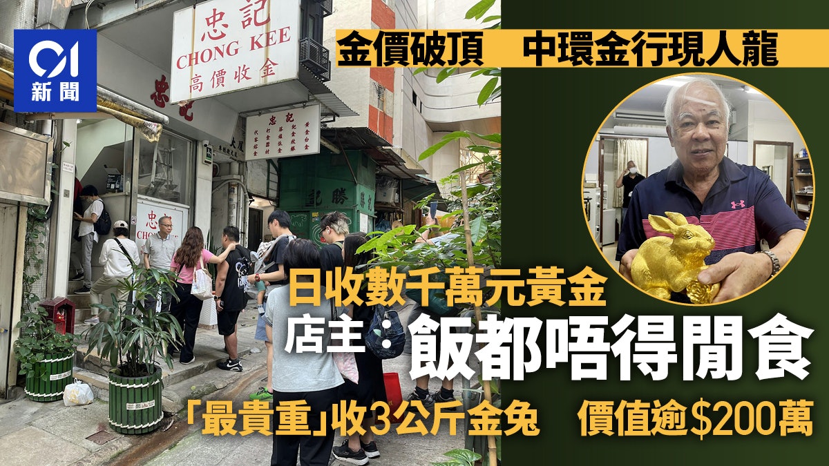 【金價/中美貿易戰/特朗普關稅政策】受關稅戰影響,避險資金持續湧入黃金市場,現貨黃金昨日(22日)「破頂」升穿每盎士3,500美元,到今日(23日)稍為回落。一連兩日有市民到金鋪放售黃金,其中以買入價高於連鎖金店而聞名的中環忠記,下午門外持續有人龍,一度有20人排隊。老闆鍾先生表示近兩日「忙到飯都唔得閒食」,每日收購價值幾千萬元的黃金,最貴是一隻重達3公斤、超過200萬元的金兔。os.tvboxnow.com; r9 \ y4 T: i7 }6 A