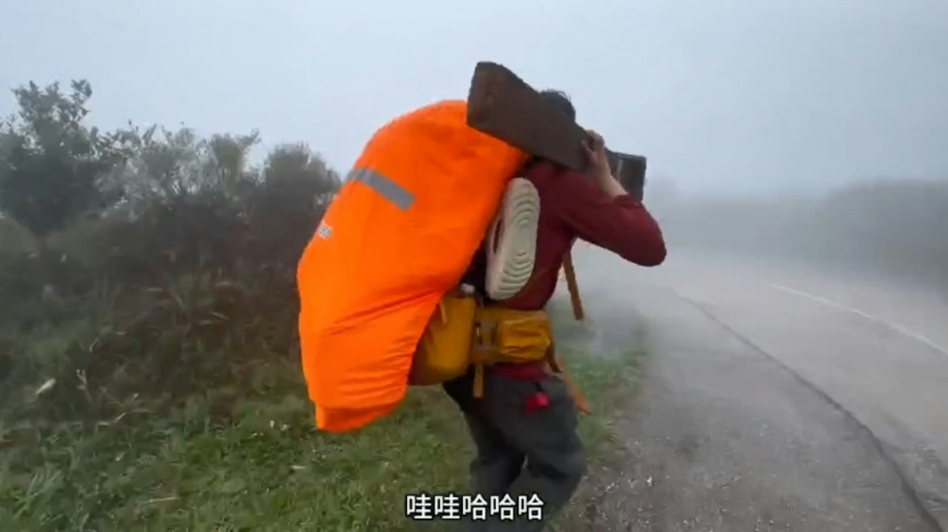 內地男子跑出大霧彌漫的馬路,邊跑邊說「沒有上限我跟你說」。(小紅書影片截圖)tvb now,tvbnow,bttvb* \8 x) [! a. I# r+ C5 L- H