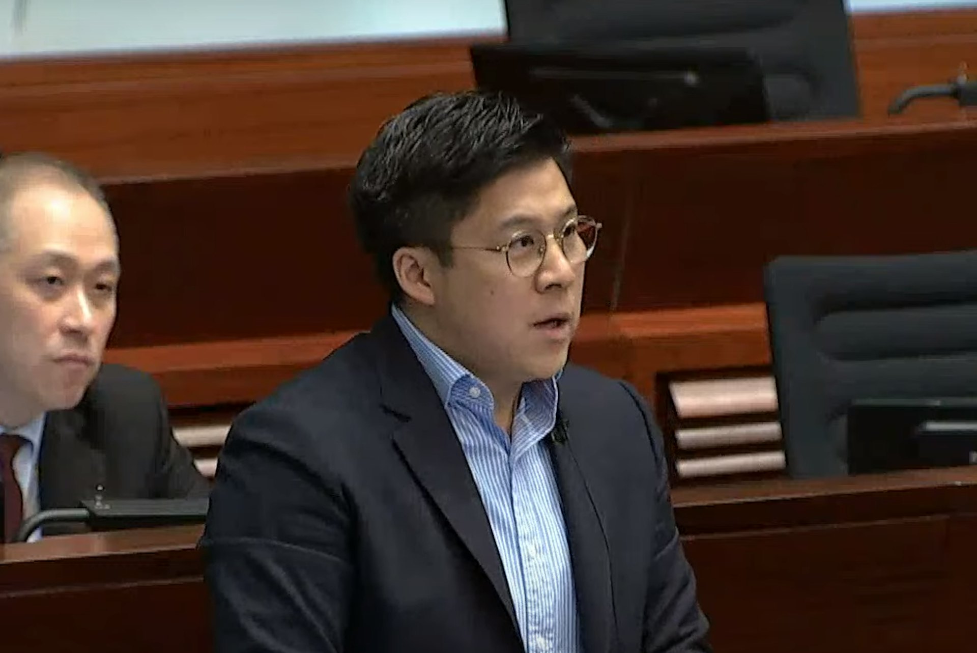 1 X' E* ^" G, U& s, ?$ y5月28日,體育、演藝、文化及出版界立法會議員霍啟剛,就公務員病假管理質詢政府。(直播截圖)tvb now,tvbnow,bttvb6 u& e* C. o3 d