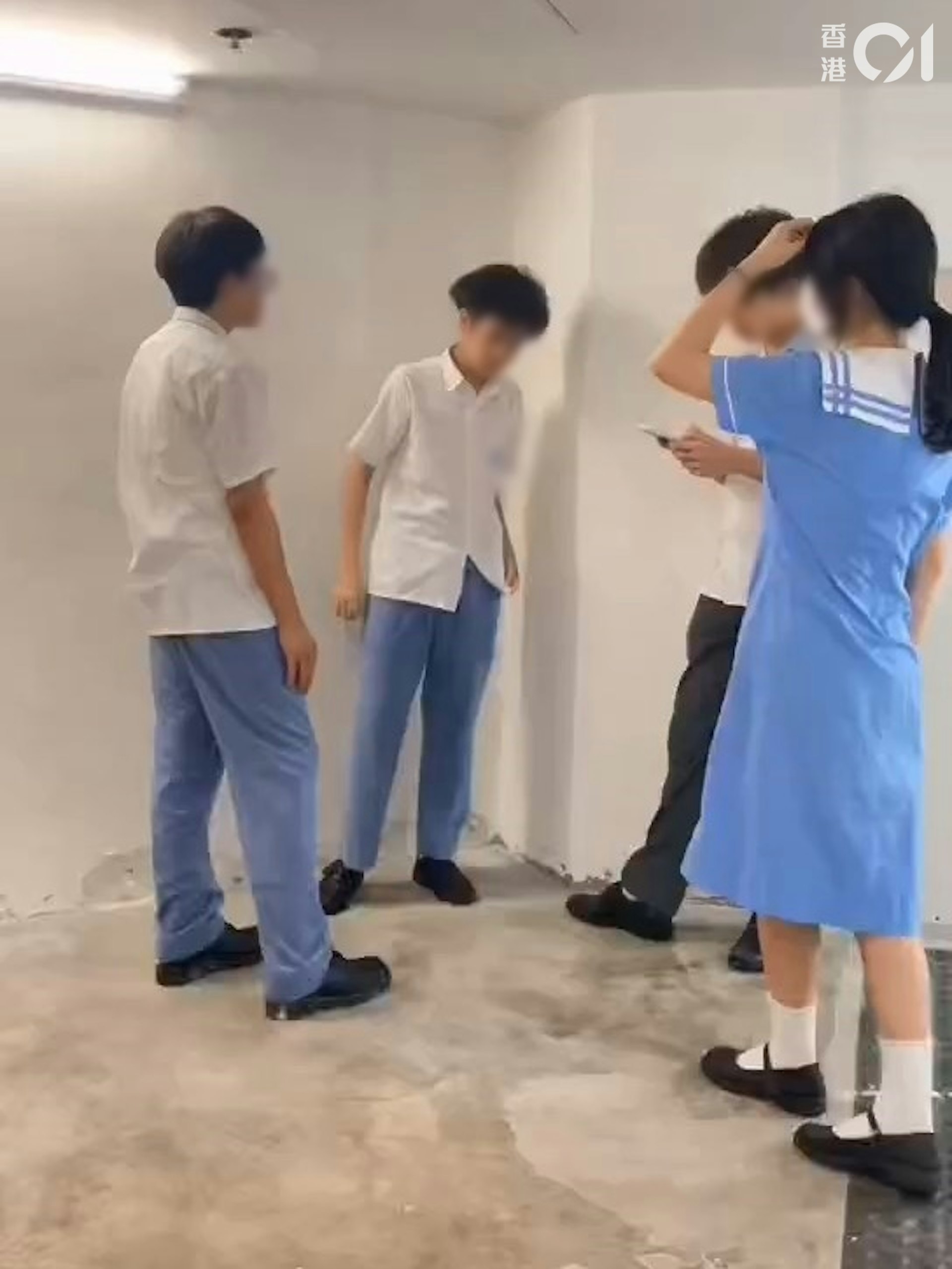 # B# `2 p; R7 L" i片段長約5分20秒,由其中一名涉事男學生拍攝,對話中相信涉及他與捱打男生的私人糾紛。片中可見,除了拍片者外,一名男學生被另外2男1女學生包圍。除了其中一名男生身穿灰褲,其餘均為藍色校服。$ g7 F( T& }3 N. H
