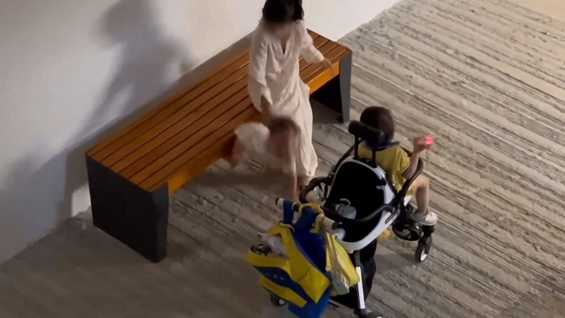 % L* t' N6 ~6 \5 ETVBNOW 含有熱門話題,最新最快電視,軟體,遊戲,電影,動漫及日常生活及興趣交流等資訊。非華裔女童的身旁,分別有一名坐於長椅上的嬰兒、以及一名坐在嬰兒車上的幼童。(網上影片截圖)os.tvboxnow.com8 W% f+ p5 m& k5 r5 F8 |