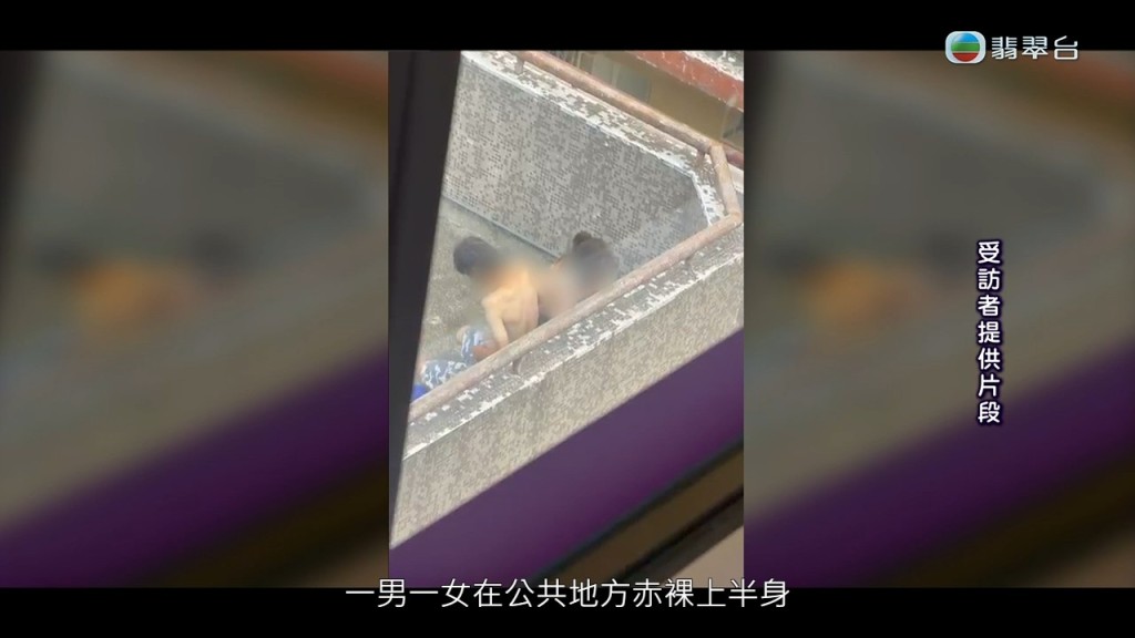 觀眾「張小姐」提供的影片,見到有一男一女在公共地方赤裸上半身,疑似是「激戰過後」,女子不慌不忙起身,穿回身上衣服,而男子繼續坐在地上整理褲帶,男子未有穿回上身衣服,而女子整理完後便再坐低,與男子一同休息。