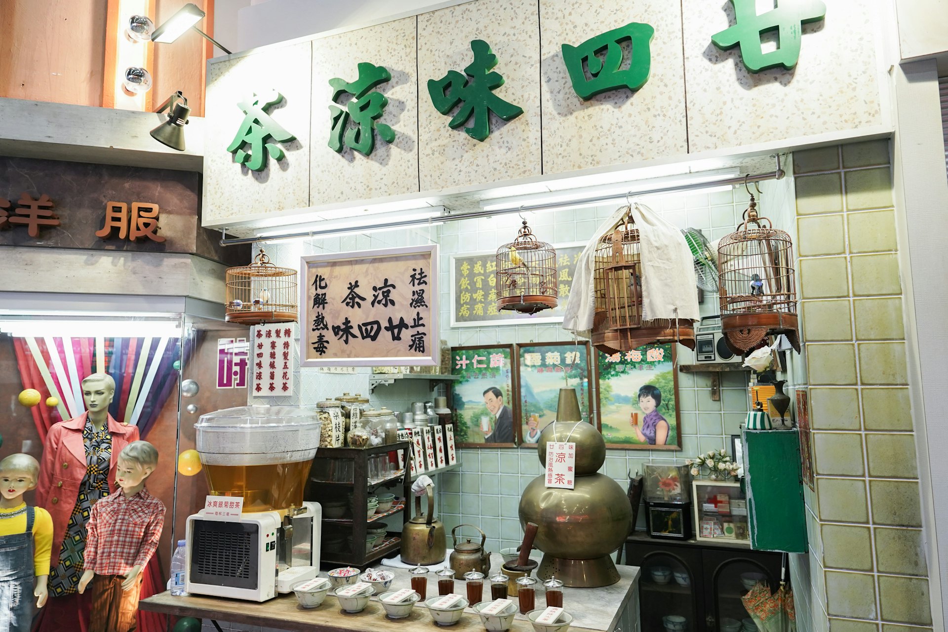 0 ^' l; X9 d* P) r8 l0 w8 F公仔箱論壇還原1975年銅鑼灣百德新街街景,包括涼茶店。(麥當勞提供圖片)0 V" _8 s, P- o8 M2 q: v5 m2 l