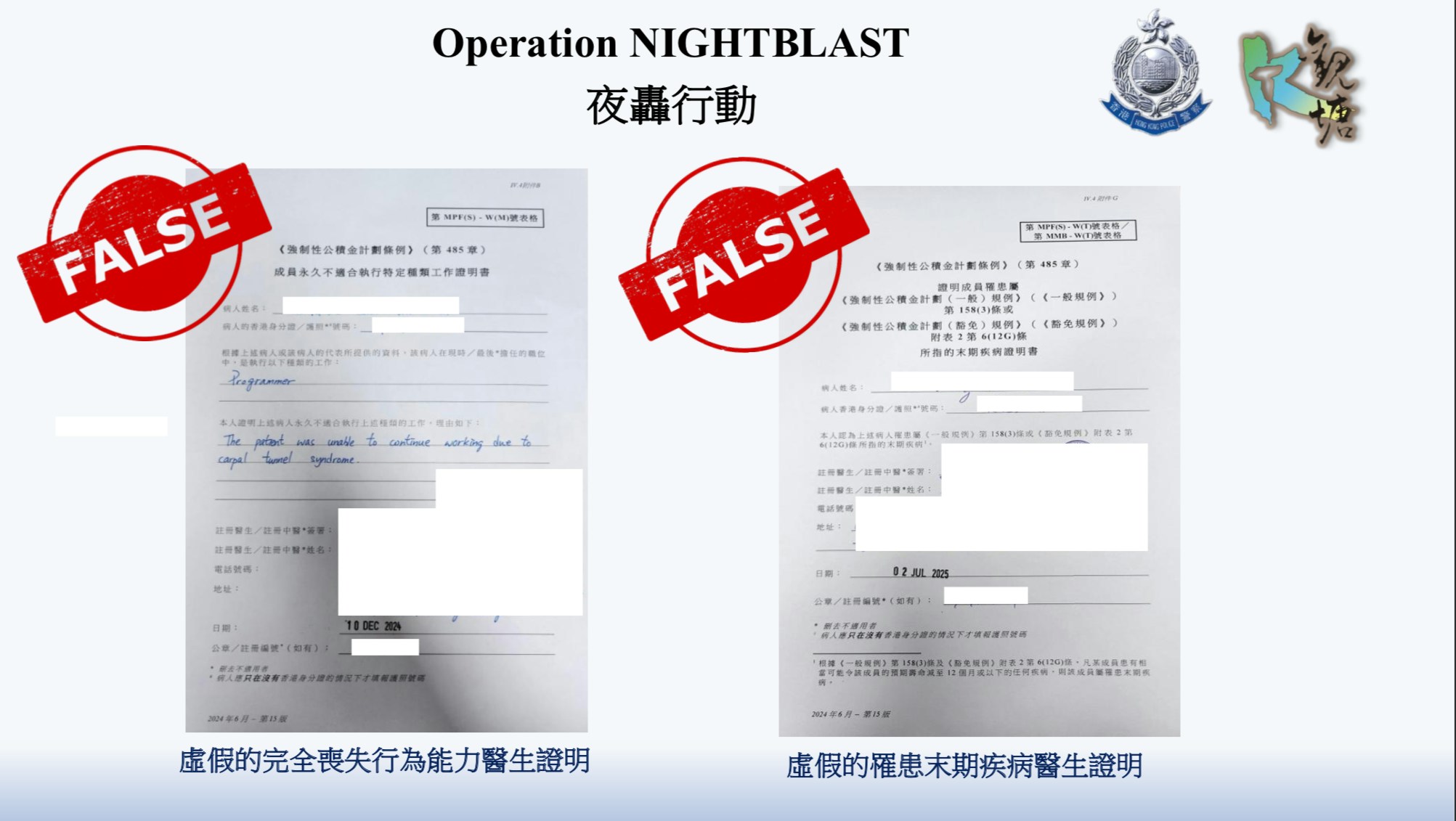 局方續指,積金局與警方及強積金受託人,一直保持緊密聯繫,必定會跟進任何可疑個案。根據《刑事罪行條例》,任何偽造或使用虛假文書的行為均屬刑事罪行,一經定罪,最高可被判處監禁14年。