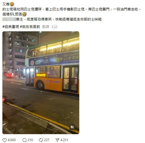 有的士司機與城巴車長爭執,的士司機更衝上巴士發難,城巴車長隨即關門開車離開,「被載走」的的士司機面露慌張表情。(Threads@tylerli_) / H* E1 y+ b5 m8 F" S! F/ W 4 x& l/ S1 k, {* }公仔箱論壇* }) m) x; ^$ [) R, s! `2 w0 z% w