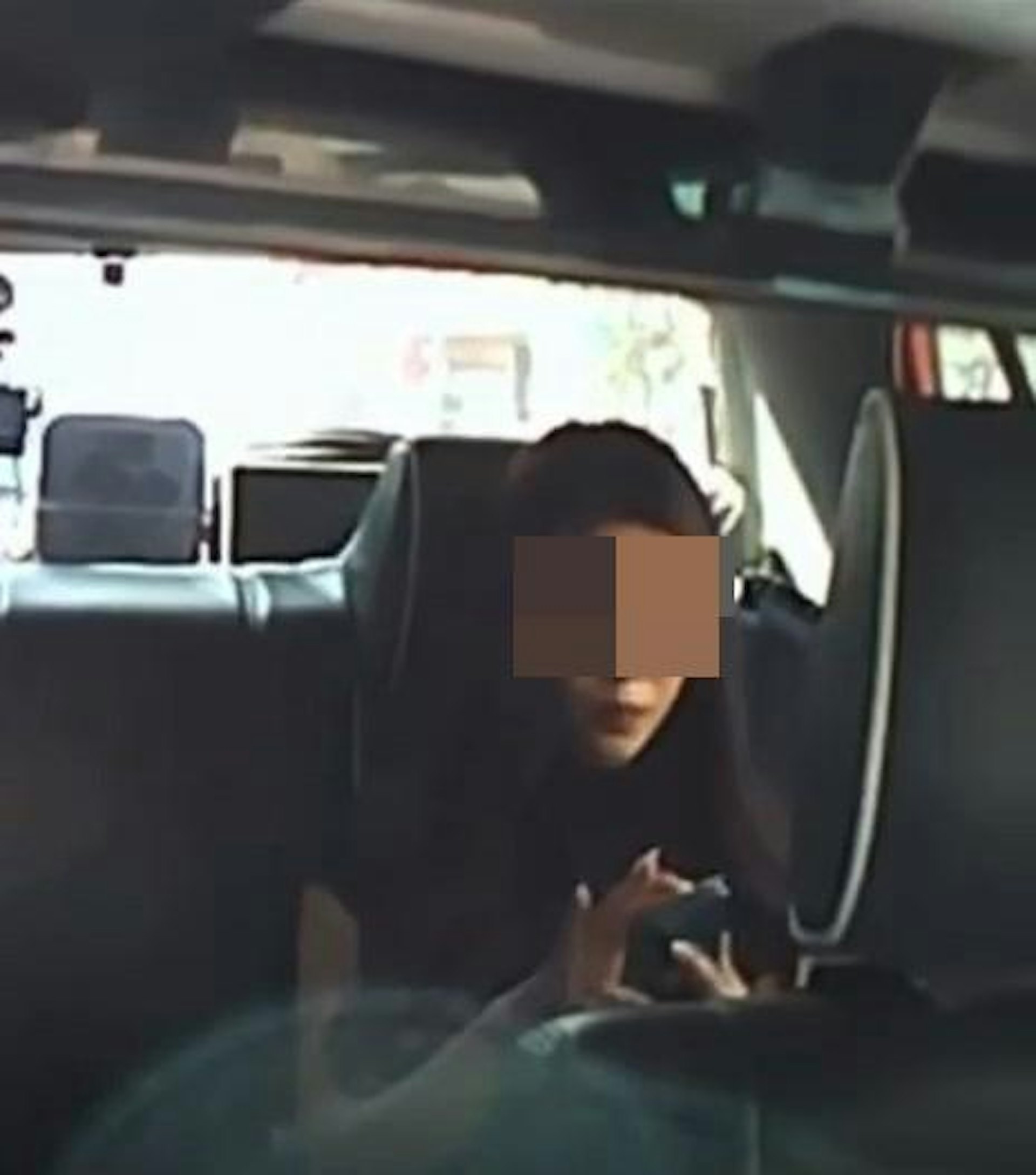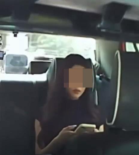 女乘客乘車時一直低頭使用手機。(Facebook群組「的士司機資訊網Taxi」)os.tvboxnow.com1 w' G8 D1 G" r