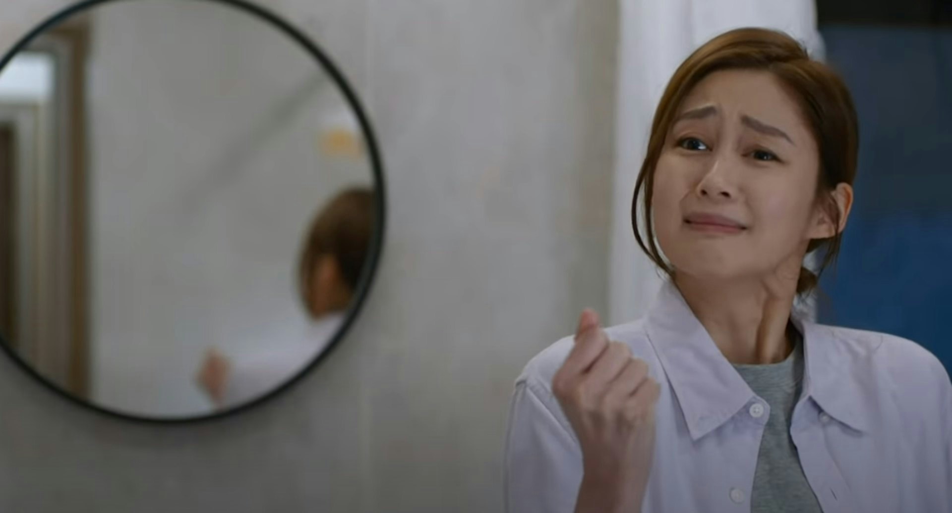 樓主指她是將杯蓋向下擺放枱面,排除空氣中的毛跌落所致,意指涉及人為。(《寶寶大過天》劇照)