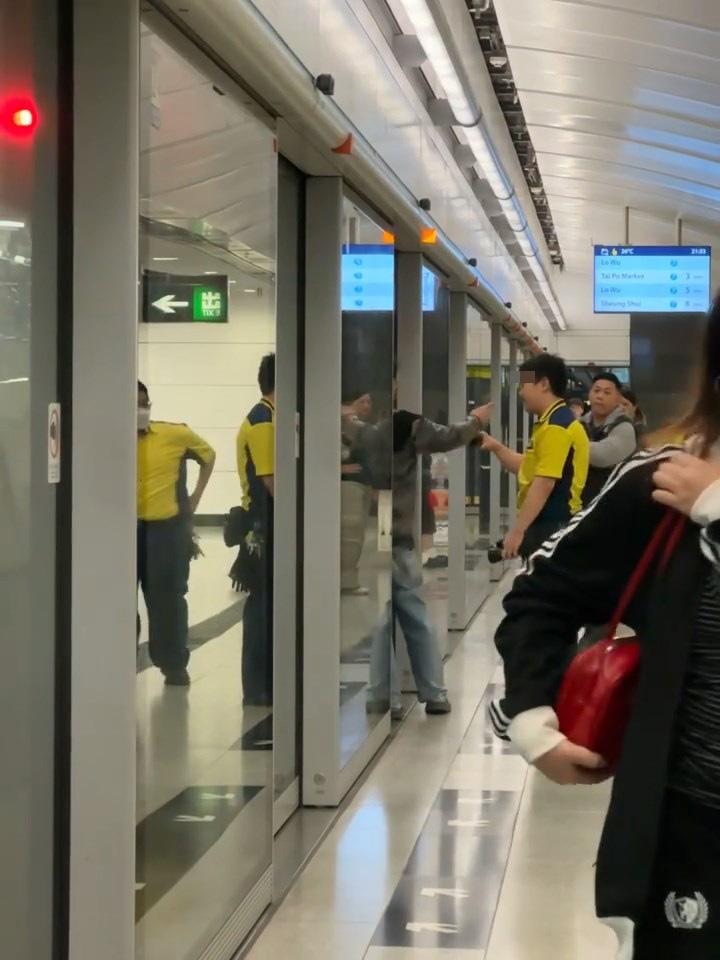 影片長逾1分鐘,見到東鐵綫月台有1名疑似醉酒、穿灰色外套大叔(下稱大叔)阻擋車門關閉,並「爆粗」責罵車內乘客「X你老X」,有男職員在場處理。大叔疑被車內乘客推出車門,但隨即再奮力推開車門阻礙列車開出,港鐵職員想拉大叔下車,「先生落車講啦」,但不成功,有職員前來增援。