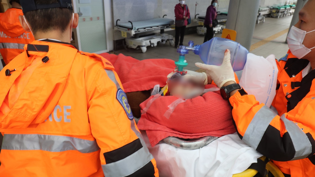 9 C; a) E! q/ B: q! K. L事主送院時血流披面。(林振華攝)