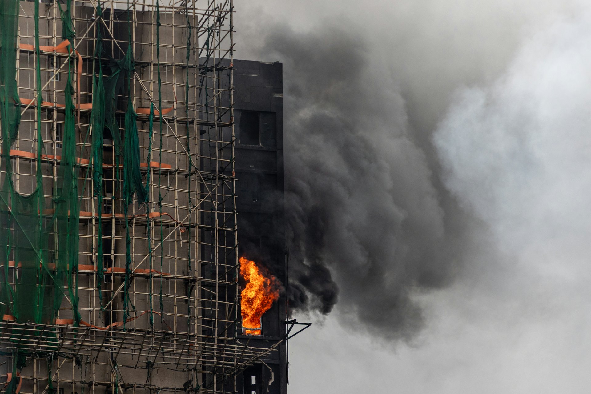大埔宏福苑五級火,圖為11月26日起火當日情況。(林振華攝) |