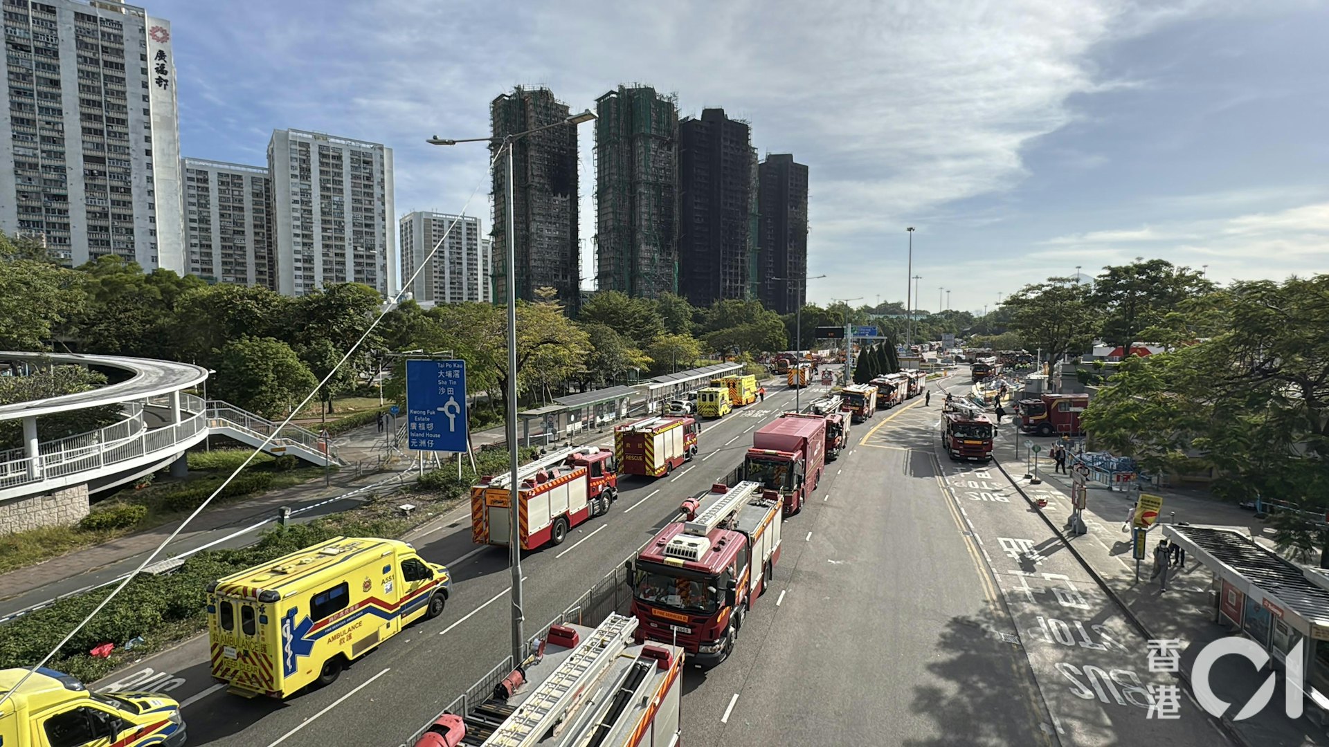 , v0 t) v5 U3 wtvb now,tvbnow,bttvb宏福苑火警第三日,大批消防和救護車在場。(翁鈺輝攝)