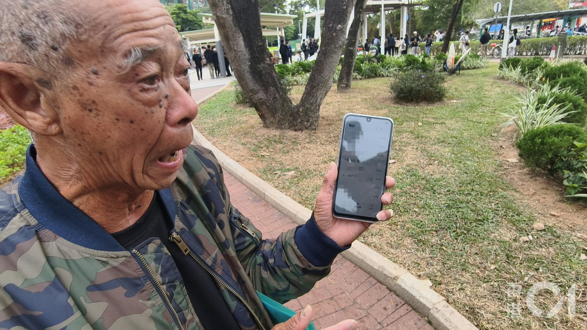 ( j. v, s9 _/ G宏福苑大火災民何先生疑遇騙徒,叫對方出示有關證件。對方見事敗,則尷尬回應:「你好醒目喎」。(黃學潤攝)公仔箱論壇1 v7 d- K( j1 j