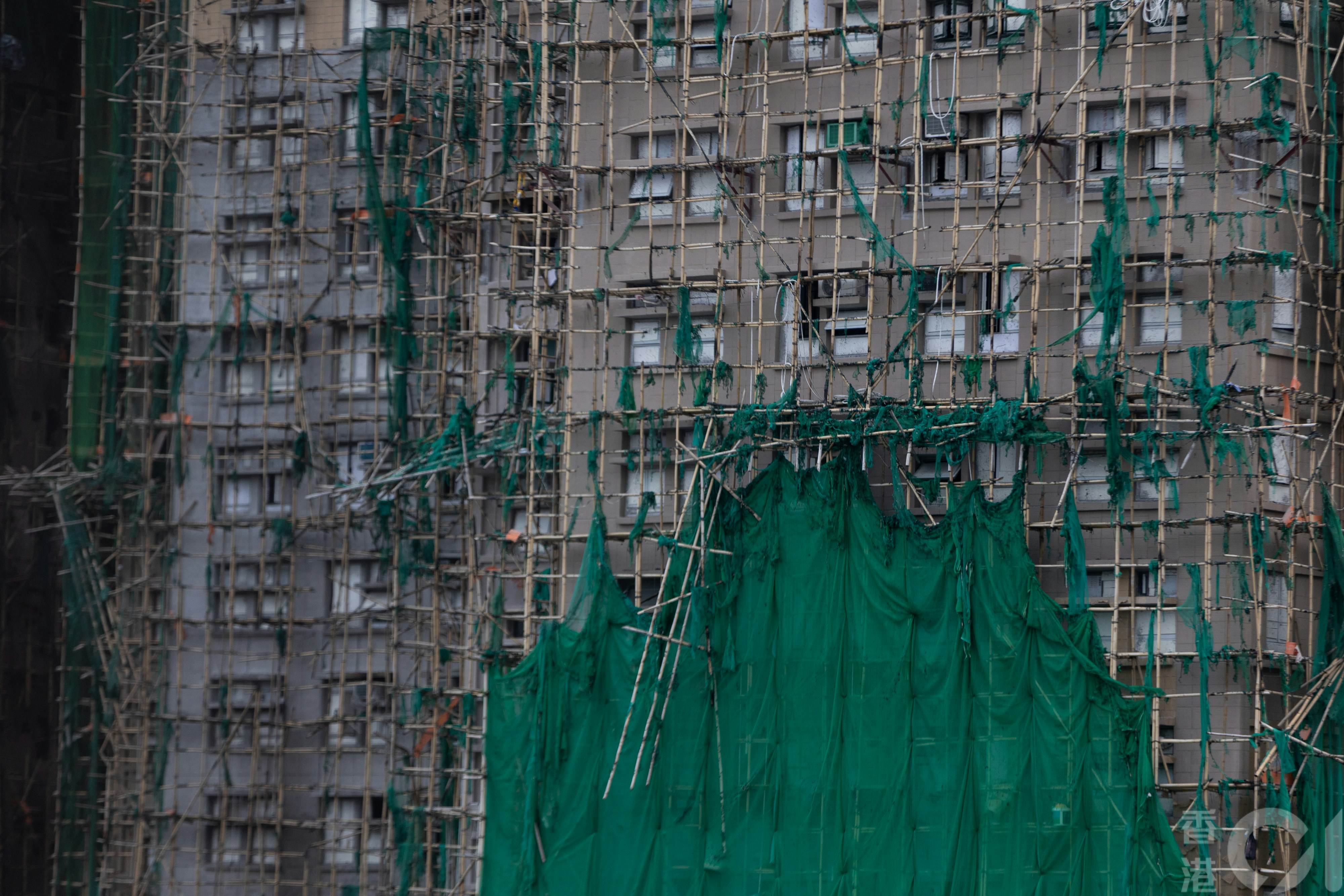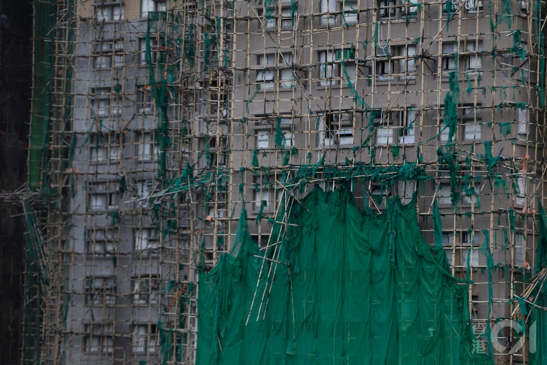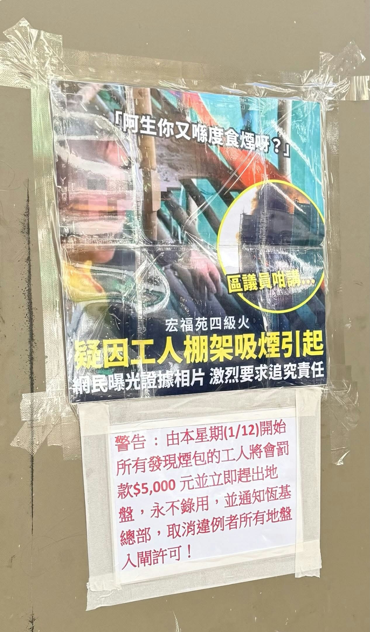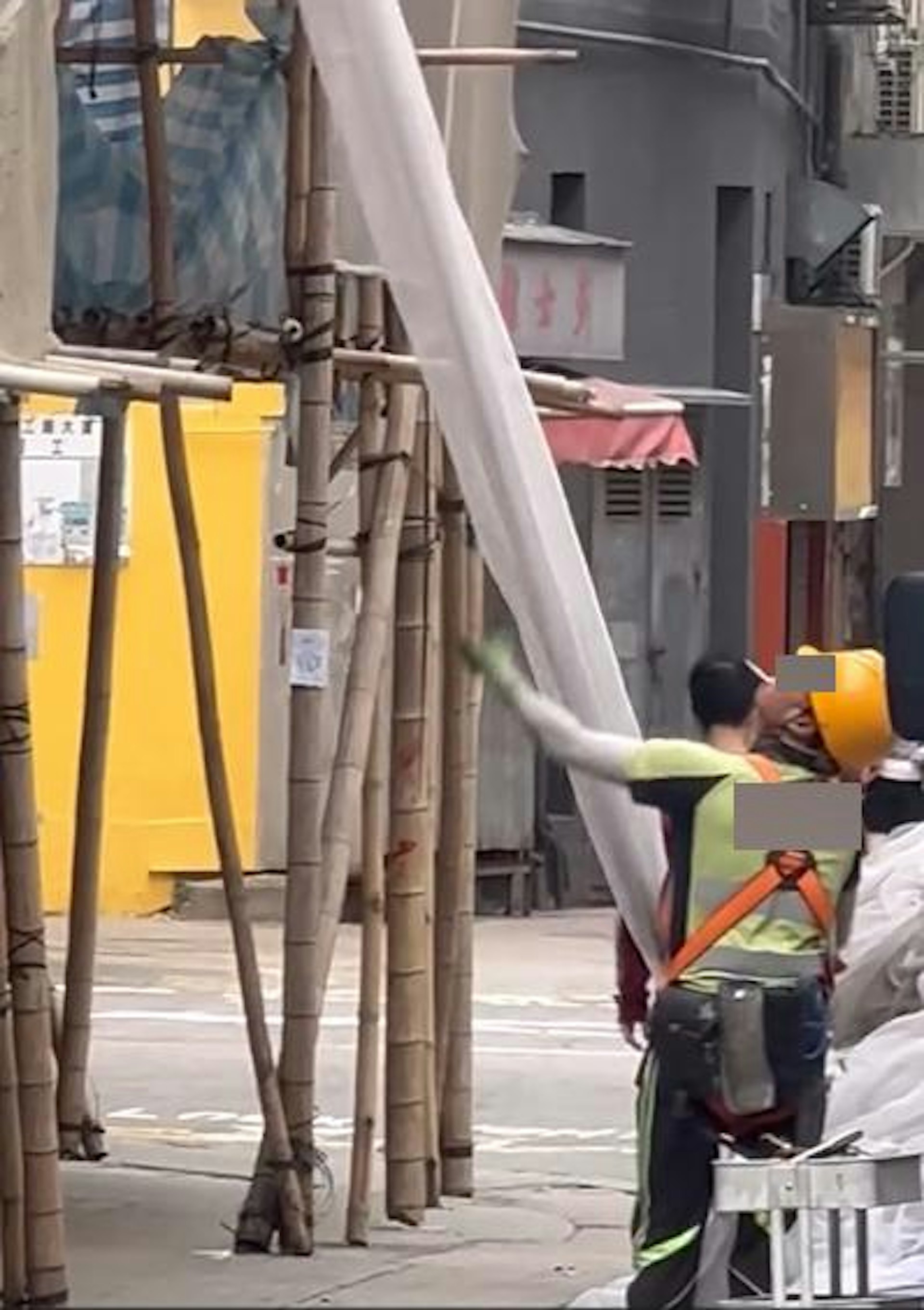11月底有影片顯示,穿上橙黃色維修工人制服的男子,蹲坐在石屎上吸煙,煙霧彌漫,離棚架相當近,而他眼前就是綠色的圍網。未知影片何時拍攝,亦不確定地點是否大埔宏福苑。(Threads@jackyyy0728)