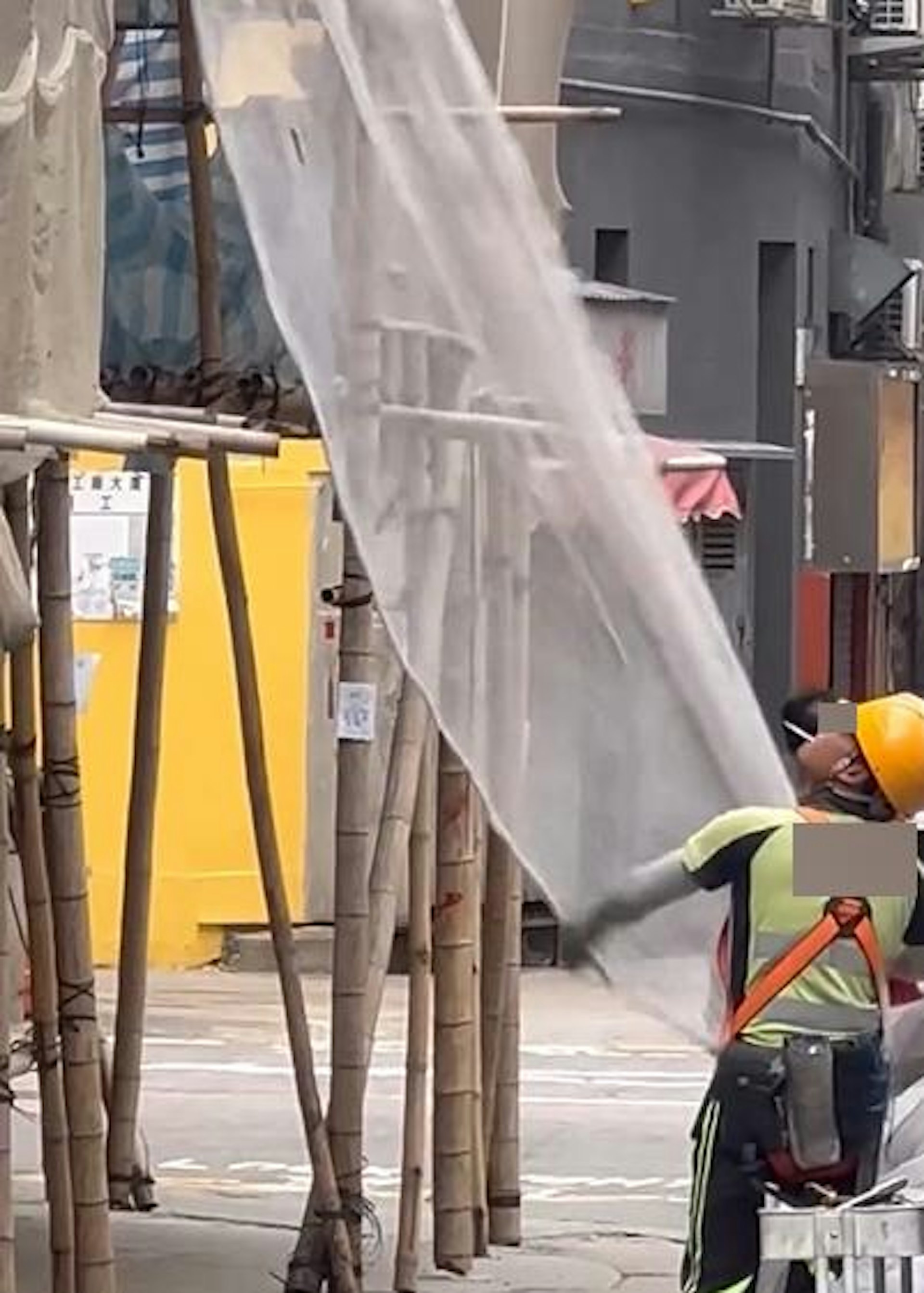 + q8 Q6 k, f* Z公仔箱論壇有網民11月底拍到工人在拆大廈圍網時「照樣擔住支煙」。(Threads@hing_wah_1978影片截圖)os.tvboxnow.com7 x% G/ U: o& s8 Q- j