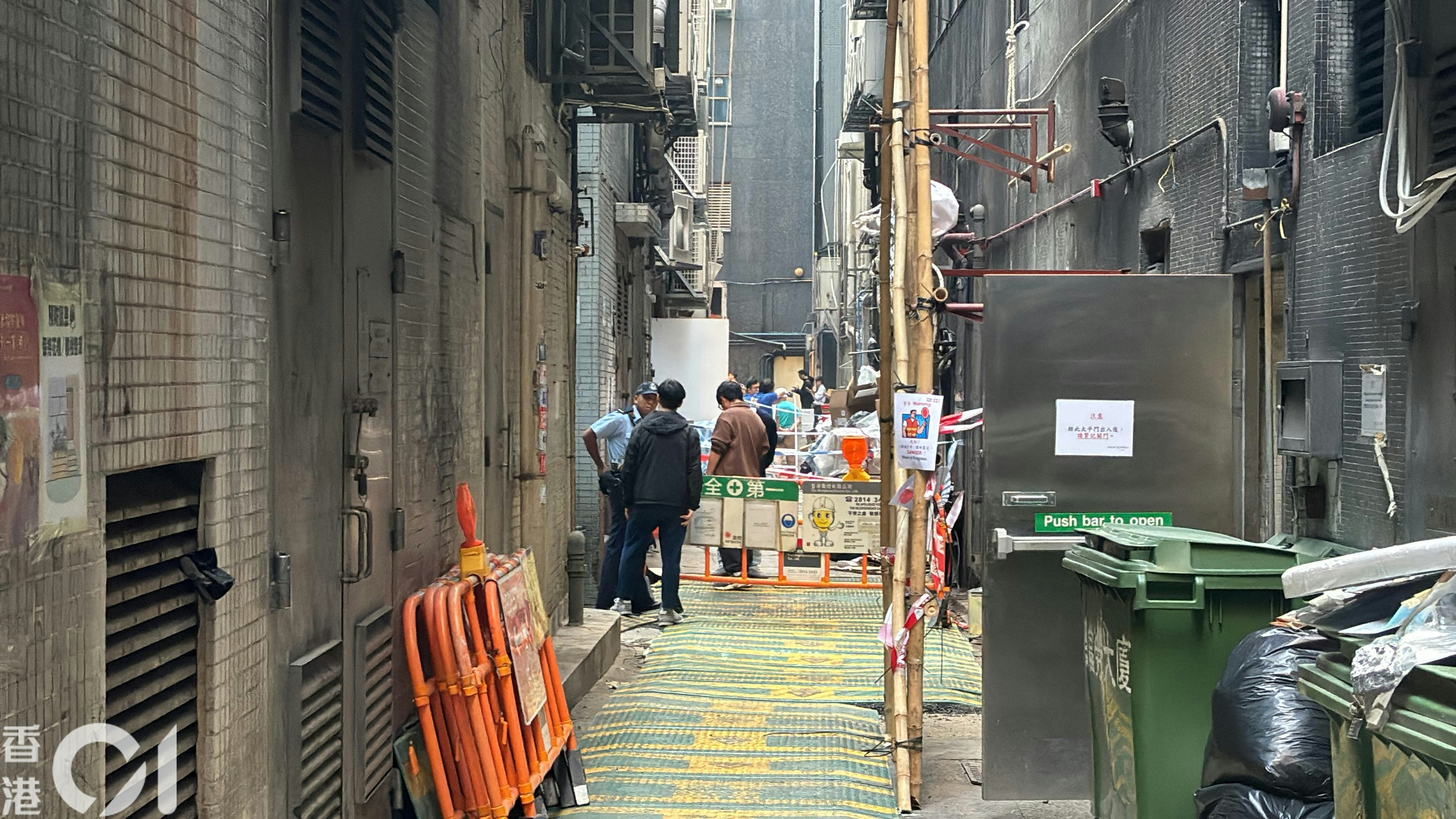 銅鑼灣渣甸街後巷疑有高空墮物,一名女子疑被擊中,頭部重創昏迷送院,警方封鎖現場調查。(陳浩然攝)6 G1 _0 x8 y8 e4 I: K0 `4 _