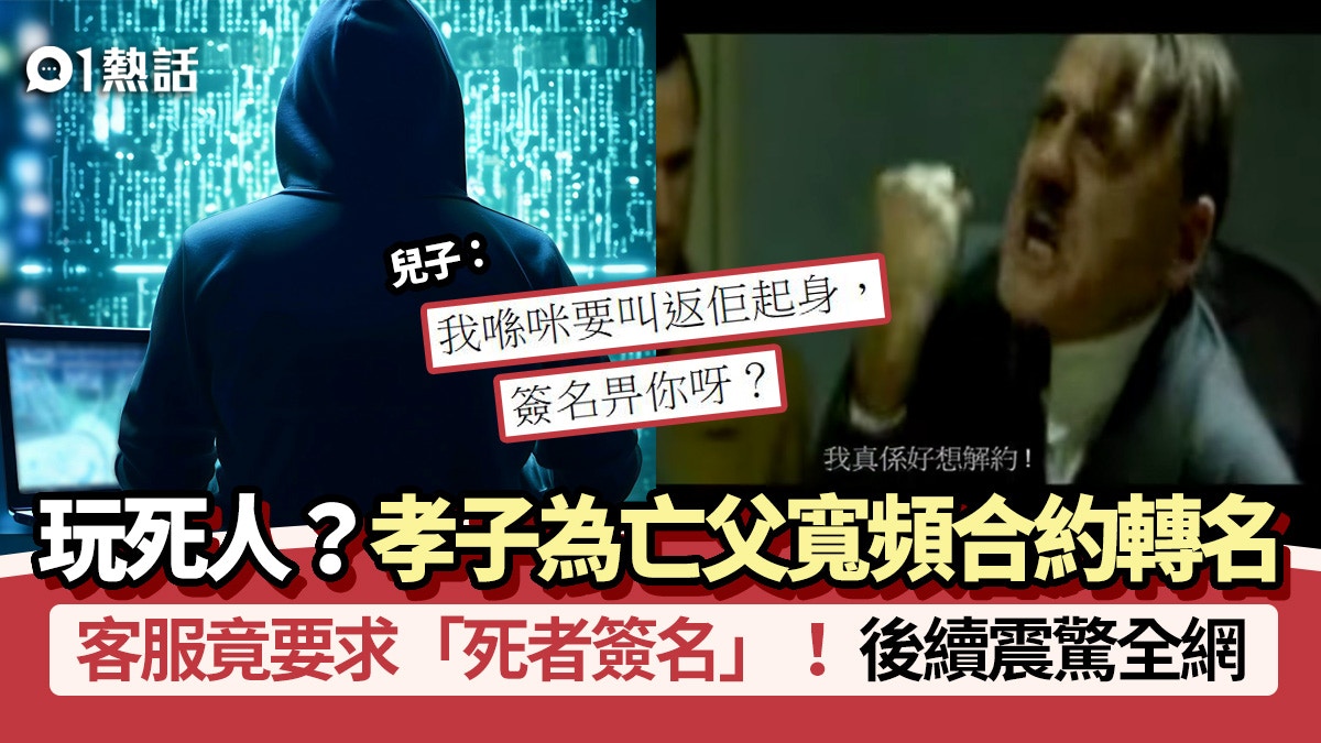 親人去世想轉寬頻合約和支付費用方式,相關電訊公司竟然要求「死人」親自簽名?有香港男子於網上發文表示,其父親去世後,他向寬頻公司要求寬頻合約轉名,詎料客戶服務員堅持要「亡父」親自簽名,強調「你爸爸唔簽,轉唔到你名」。幾經辛苦成功轉名,沒想到又因更改支付方式,再次被客服要求「亡父」親自簽名作實,令樓主「氣炸」,終出動絕招解決,事後慨嘆「真心唔明,錯1次都算,連錯2次,到底要幾難先做到呢?」。