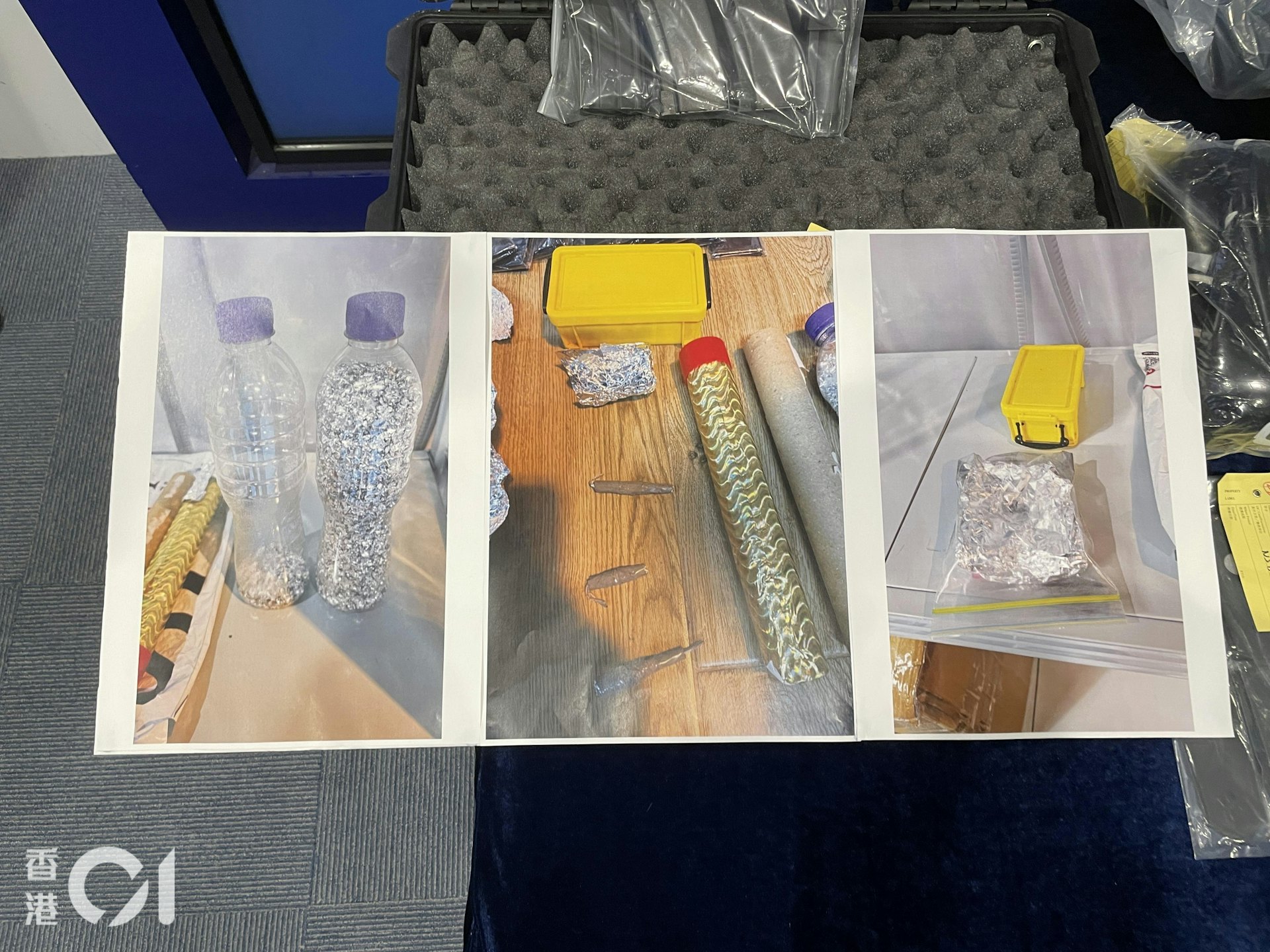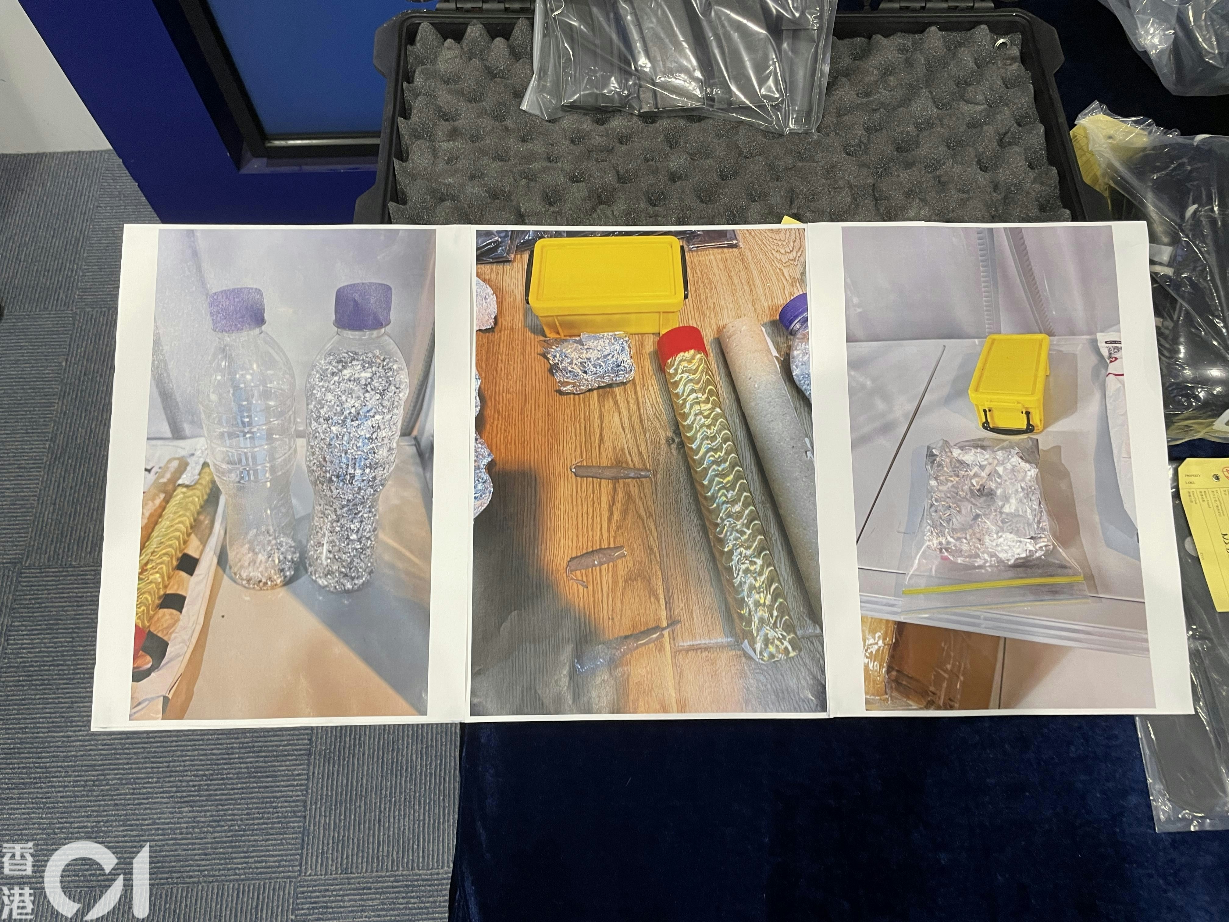 警方國安處以涉嫌「非法操練」拘捕9名男子,警方稱檢獲的爆炸品經過自行改裝、有引線可用作點燃。(陳浩然攝)