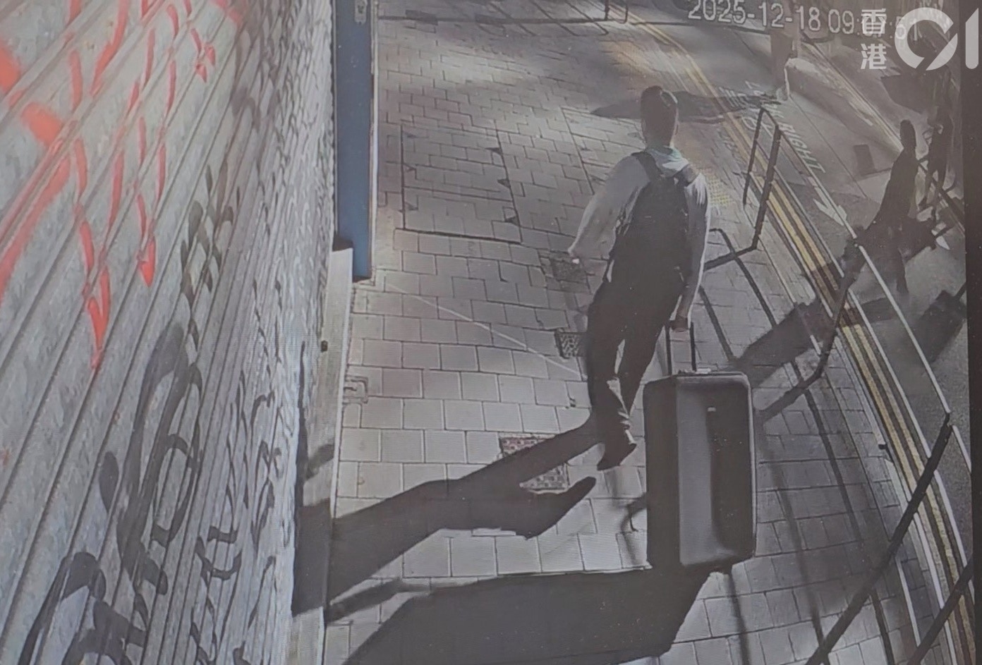 - _# p) B- ~! e! p! Z男事主遇劫前拖住載有大量日圓的行李篋。(讀者提供影片截圖)tvb now,tvbnow,bttvb" L8 N& Z5 ]) y: V4 Q) @; I
