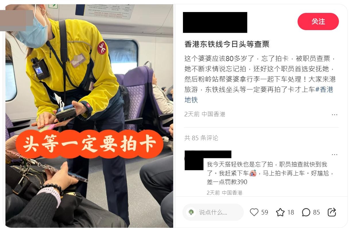 & K. n9 M+ F4 |【港鐵/東鐵頭等艙/逃票/罰款】乘搭港鐵東鐵頭等車廂必須再拍卡繳付車資,否則可被罰款1,000元。本港流傳影片及相片,指東鐵頭等車廂內有1名80多歲老婆婆沒付款「斷正」,於是不斷向查票職員求情說「忘記拍」,而職員安撫先老婆婆,後續舉動更獲網民讚揚「做得好」。8 P2 i+ u k5 B; }- c
