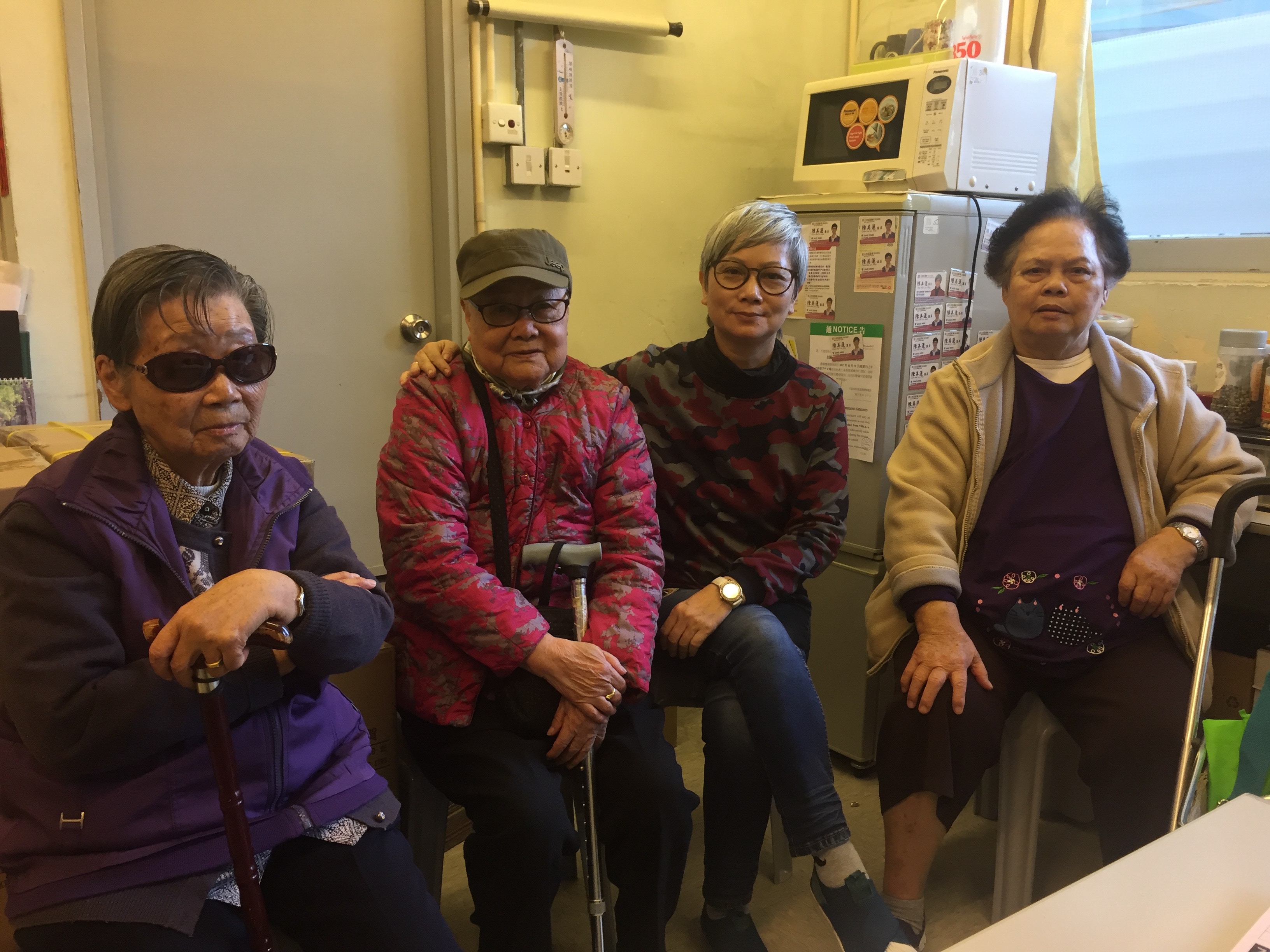 R$ }5 x" o0 f4 V3 G) u公仔箱論壇王婆婆(右一)指出,幸好當時有位社工得悉她的情況,堅持要她去求診,現時逐漸康復。(文雪萍攝)