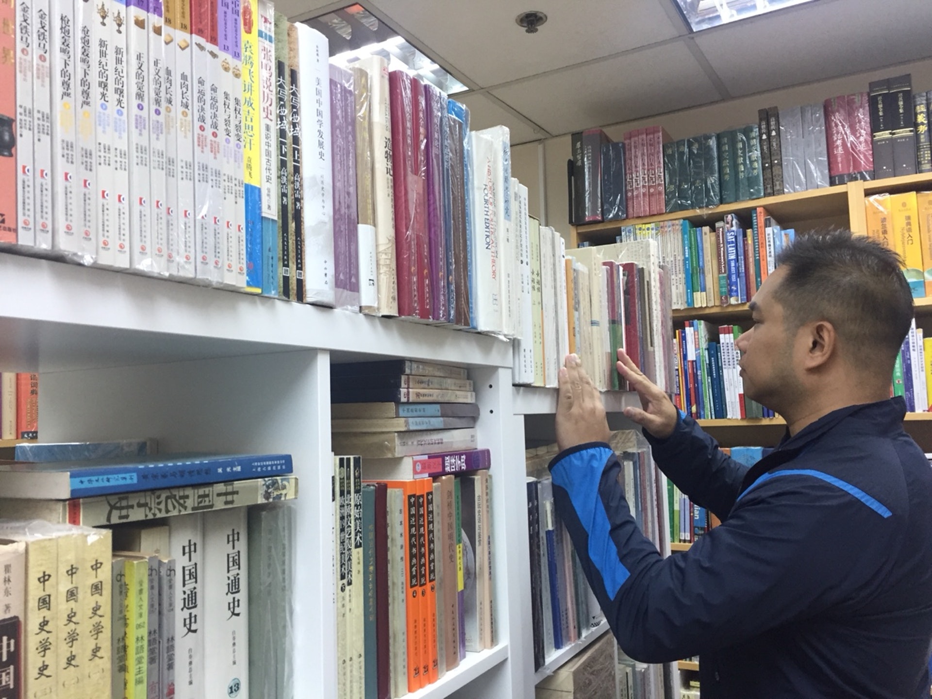 馮老闆指,專賣冷門語言書,因深信總有客人需要。(胡家欣攝)