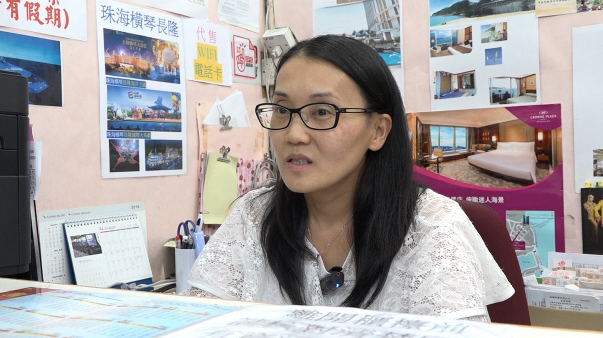 # g4 v' z& z2 k) ?) ?旅行社職員陳小姐指生意額下降五成。(譚威權攝)