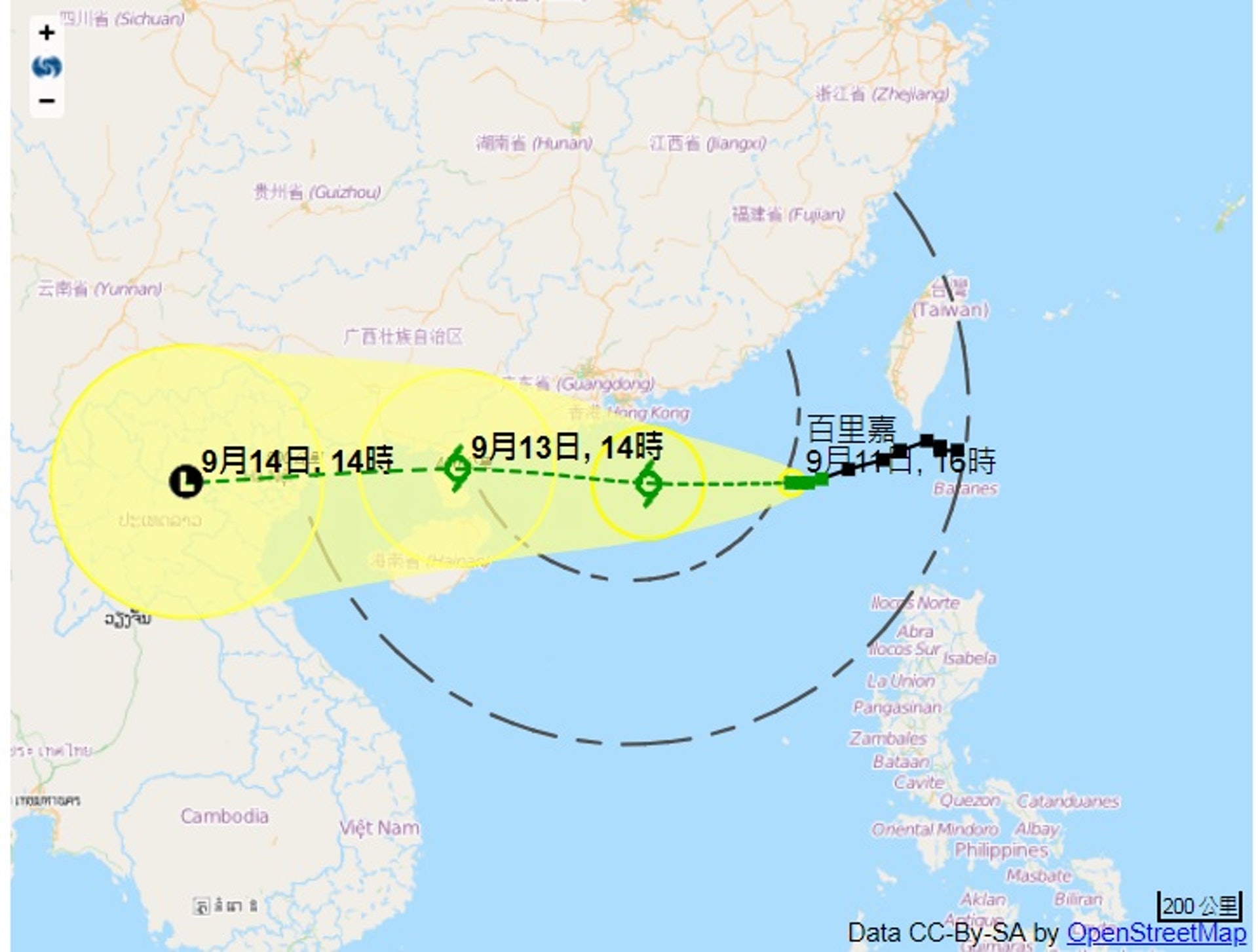 / G* P) C3 C+ {/ M6 B「百里嘉」未來數天動向。(天文台網站截圖)