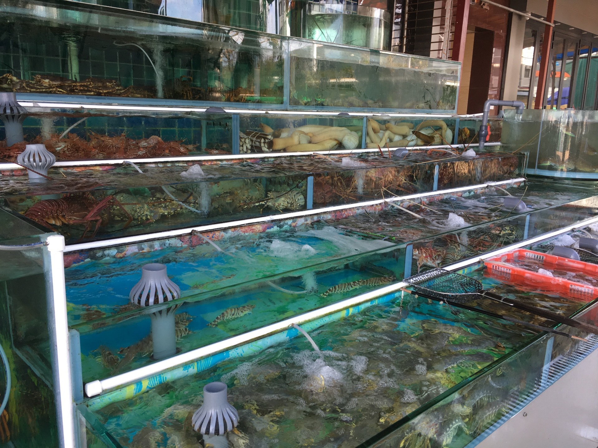$ `+ _5 f' w: H颱風山竹毀污水廠污染西貢海水。圖為西貢的海鮮酒家有大量生猛海鮮。(鄭翠碧攝)