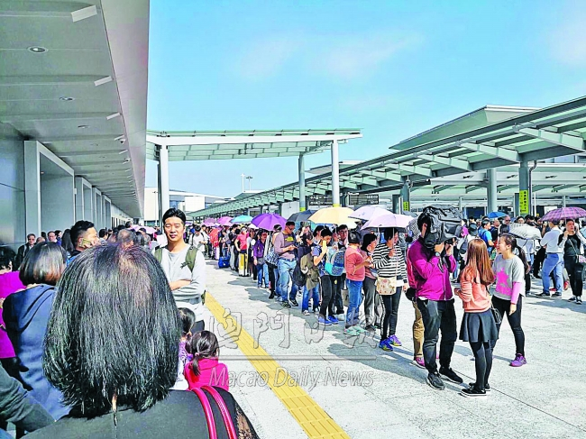 + a n4 i# s1 o" L; f公仔箱論壇 【本報消息】昨日回歸假期,本澳各出入境口岸秩序大致暢順。惟有人欲經港珠澳大橋澳門口岸往香港遊玩,但候車旅客大排長龍,居民苦等兩小時仍無法上車,加上“金巴”不准退票,祇能趕赴碼頭乘船,費時失事,認為相關交通配置仍需完善。& e6 w8 h2 g. N5 Y1 e! e: n" I) n