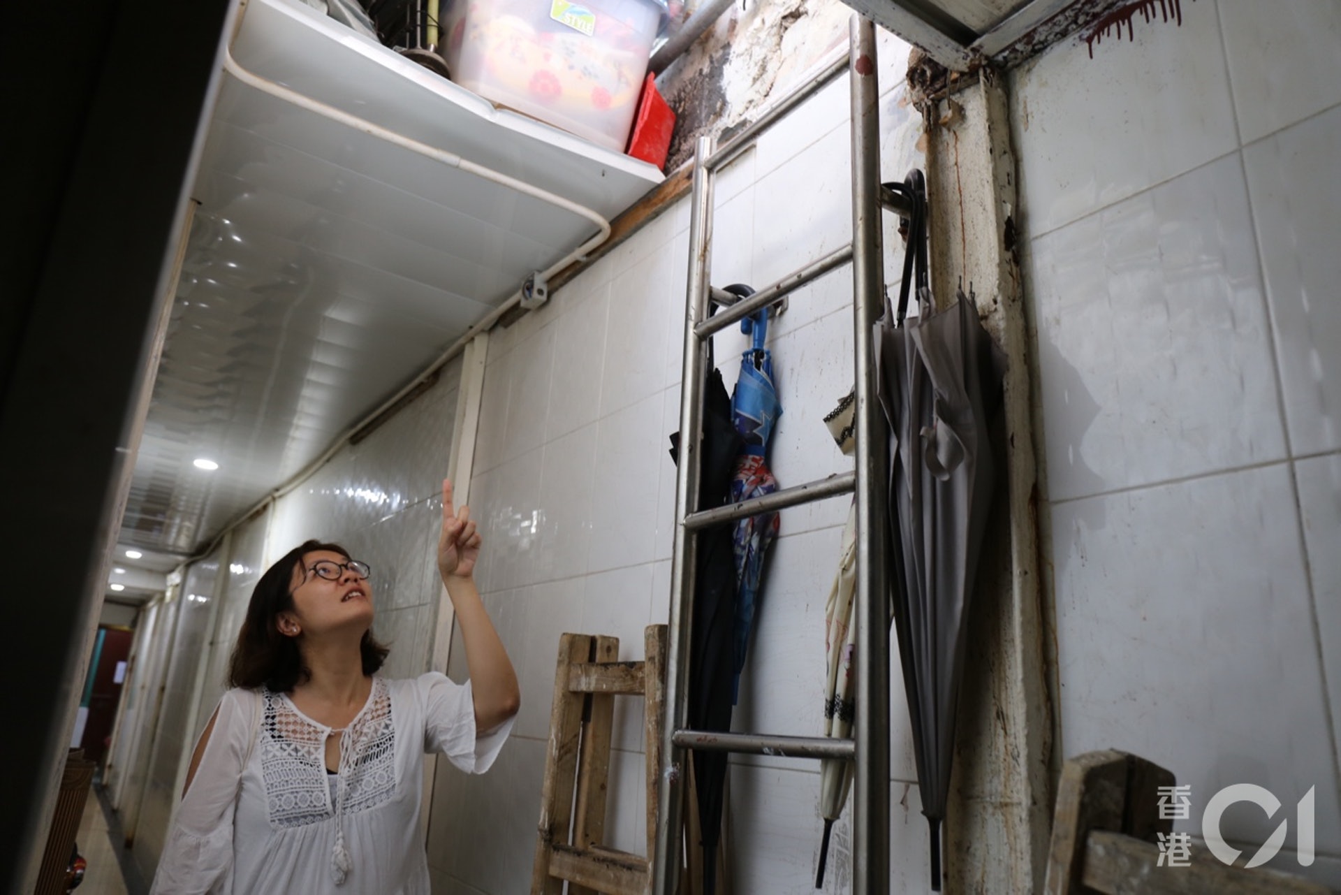 # e" b& c a9 i% Y- `懷疑僭建劏房平台位置。(陳諾希攝)- @! q- k: [+ h( _ R% B2 p