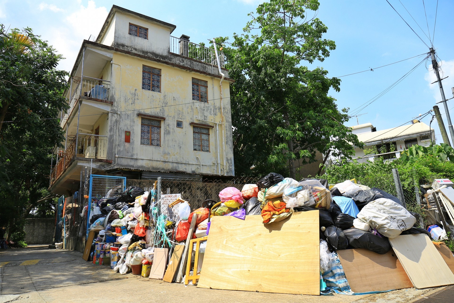 ) W5 N- N# D+ v$ o' ltvb now,tvbnow,bttvb上水圍圍內村垃圾收集站附近有民居旁,被人堆滿數百包垃圾、木板和雜物。(鄧柏良攝)8 _' _/ J" Y; G# r4 V