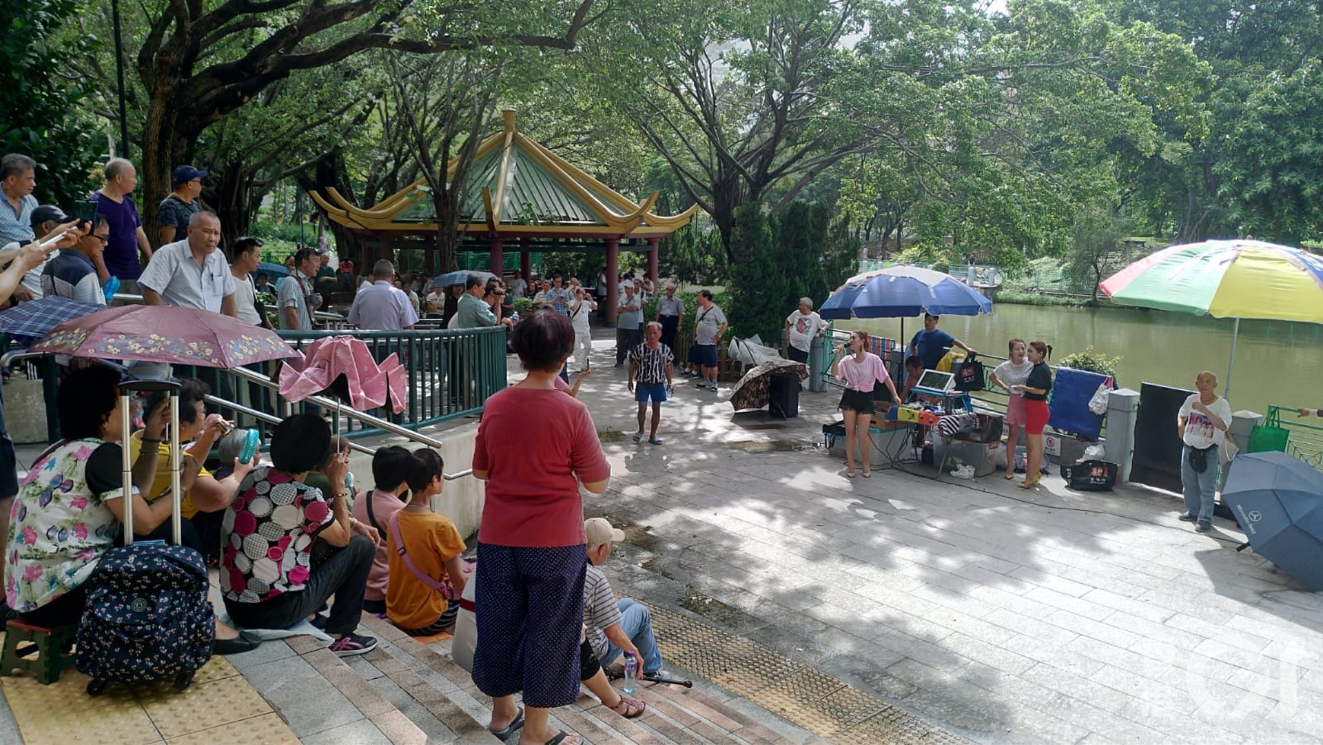 記者實地視察發現,表演檔口其實遍佈屯門公園各處,快餐亭外的表演者比較正經地演唱,而人工湖旁空地的表演者就多以熱褲短裙高跟鞋上陣,觀眾亦較多。每個檔口都備有擴音機、揚聲器,即使記者走到一池之隔的屯門公園共融遊樂場,仍然聽到他們的歌聲音樂聲。tvb now,tvbnow,bttvb5 A' P' s8 \8 C