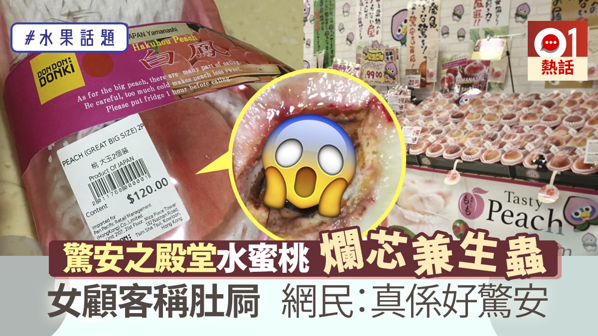 / i. r1 H& ~: Y l公仔箱論壇【橙訊】日用品雜貨店「驚安之殿堂」在香港的首間分店早前開幕,吸引大批市民慕名前去。不過,最近有網民就指購買的日本水蜜桃,切開後竟然有多條黑色蟲狀物,非常嘔心,事主在不知情下進食了一個水蜜桃,當晚出現腹瀉,最後確診腸胃炎。