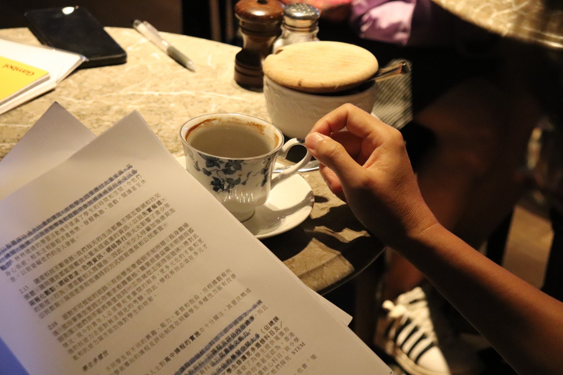 訪問約在銅鑼灣一間餐廳進行,Ben Sir用叉在伯爵咖啡味蛋糕的尖端切下一小塊三角形,然後喫一口齋啡,在淡淡咖啡香中說着他對廣東話的堅持。