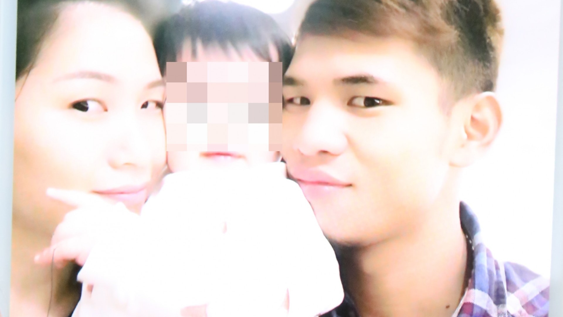 26歲姓吳工人在荃灣開工時,在棚架高處墮下,遺下懷孕6個月的妻子及1歲兒子,家庭頓失所依。(陳浩然攝)3 Y% ] P7 p3 k: L* ^6 |/ m6 r