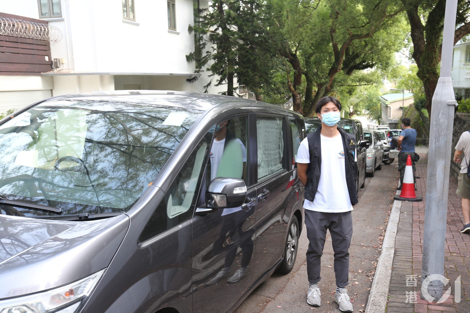 5 p" d! a8 ~+ x) s3 T, Ztvb now,tvbnow,bttvb【黎智英被捕】探員在黎智英大宅外戒備。(丘啟謙攝)