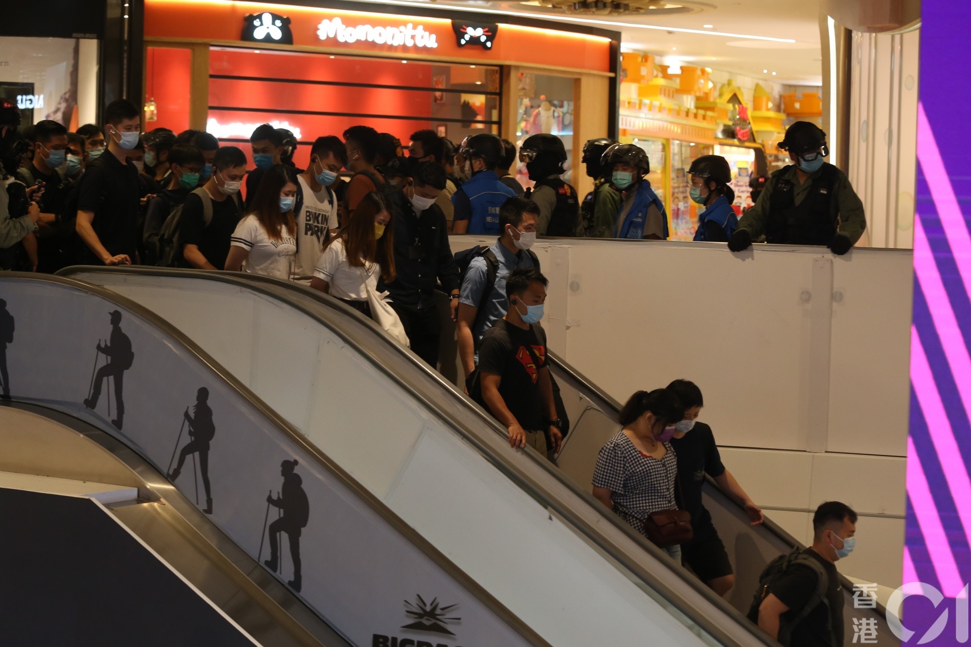 警方指今午約2時,有人在商場內聚集及叫口號,警方派員到場驅散及截停搜查。行動中拘捕9男5女涉嫌非法集結,年齡介乎14至55歲,另外一名12歲男童被帶返警署,警方聯絡其家長將男童接走。行動中警方未有就《預防及控制疾病(禁止羣組聚集)規例》發出定額罰款通知書。
