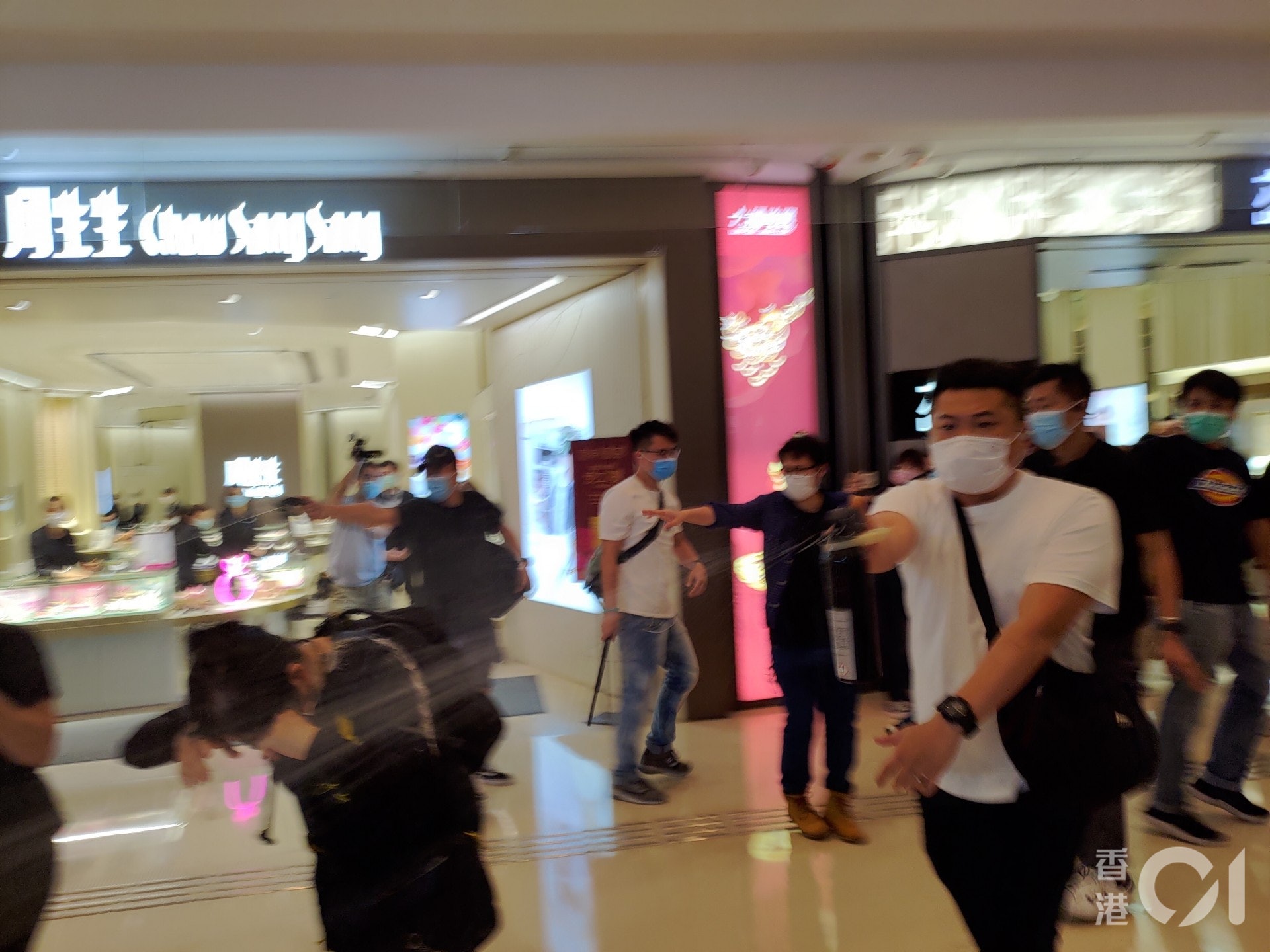 至晚上7時許,便衣警員於商場突然制服兩名男子並帶走,有在場人上前理論,便衣警員隨即施放胡椒噴霧,其後防暴警員到場增援。1名中年婦「中椒」不滿警方「行過都唔畀」,並指他們無出示委任證。民協副主席、深水埗區議員何啟明及元朗區議員林進亦被噴中。 |